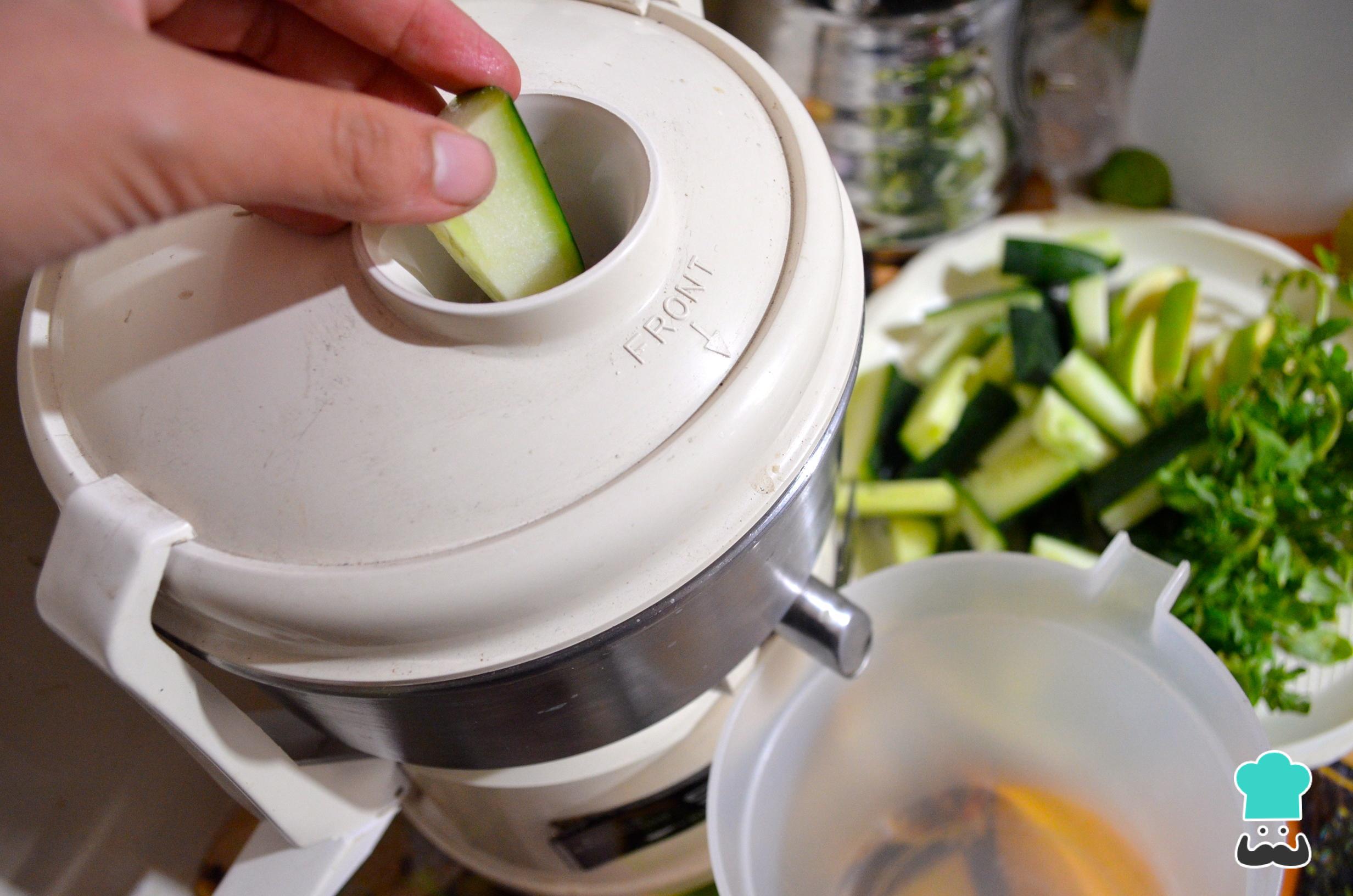 Se você preparar esta receita no espremedor, introduza rapidamente todos os legumes picados, assim você pode usar mais legumes por porção, seu corpo rapidamente absorve nutrientes e aumenta seus níveis de energia imediatamente. Se você preparar esta receita em liquidificador, você obtém mais de fibra por porção, seu corpo lentamente absorve nutrientes e açúcares, que ajuda a estabilizar os níveis de açúcar no sangue (e mantém-te satisfeito por mais tempo).