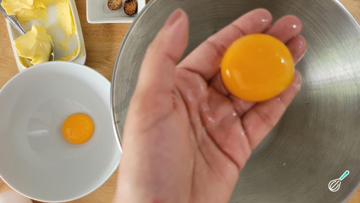 Comece separando as claras das gemas. Coloque as claras na tigela da batedeira ou em um recipiente para bater em neve.
