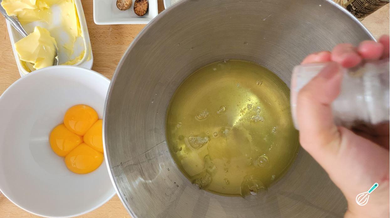 Coloque uma pitada de sal nas claras e leve para a batedeira para bater em neve.