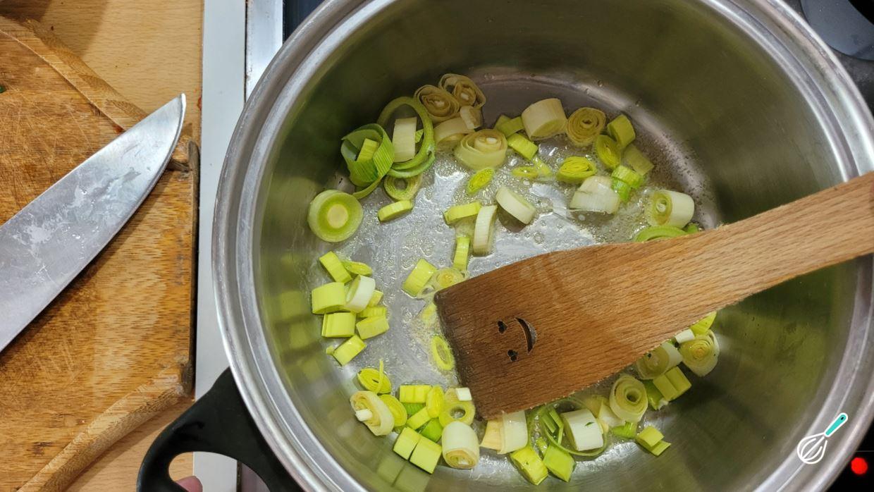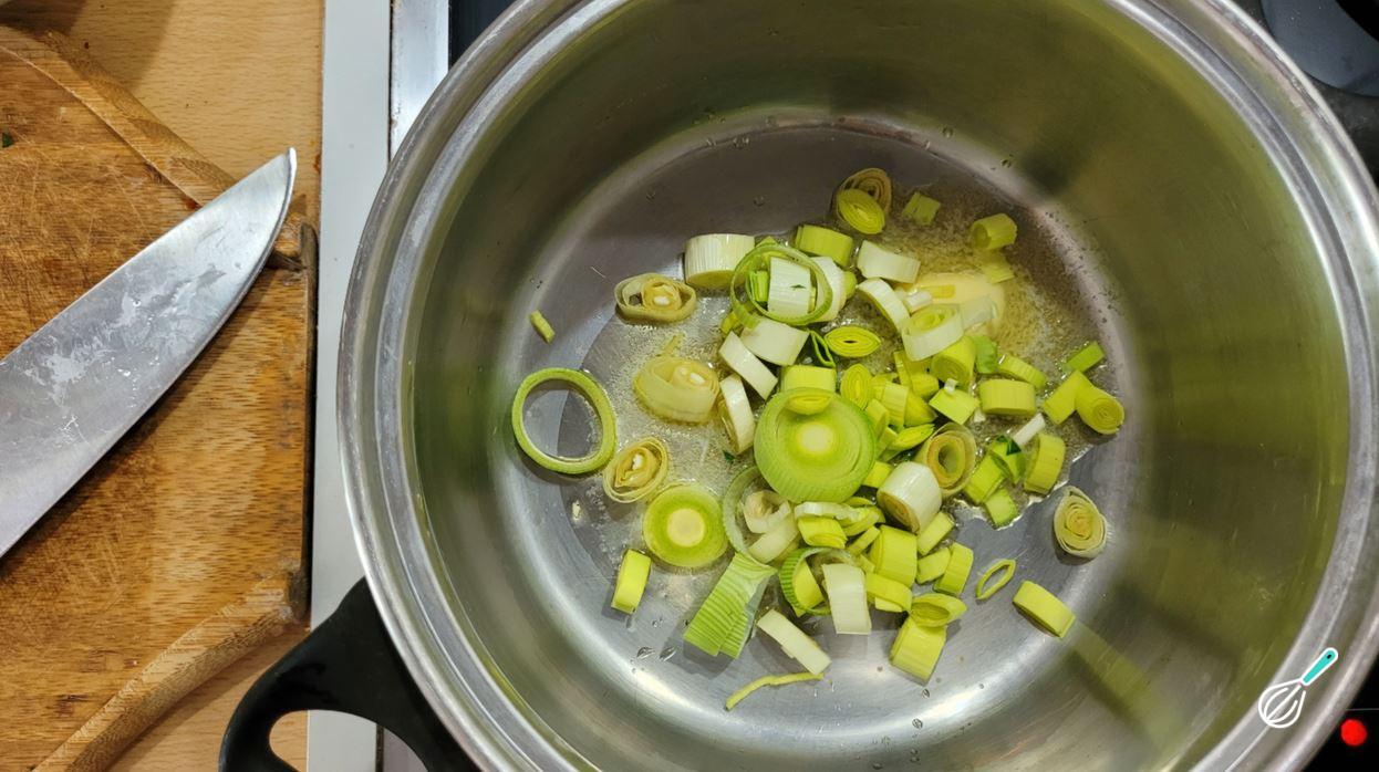 Dica: As folhas do alho poró são aromáticas e você pode guardar para fazer um caldo de legumes.