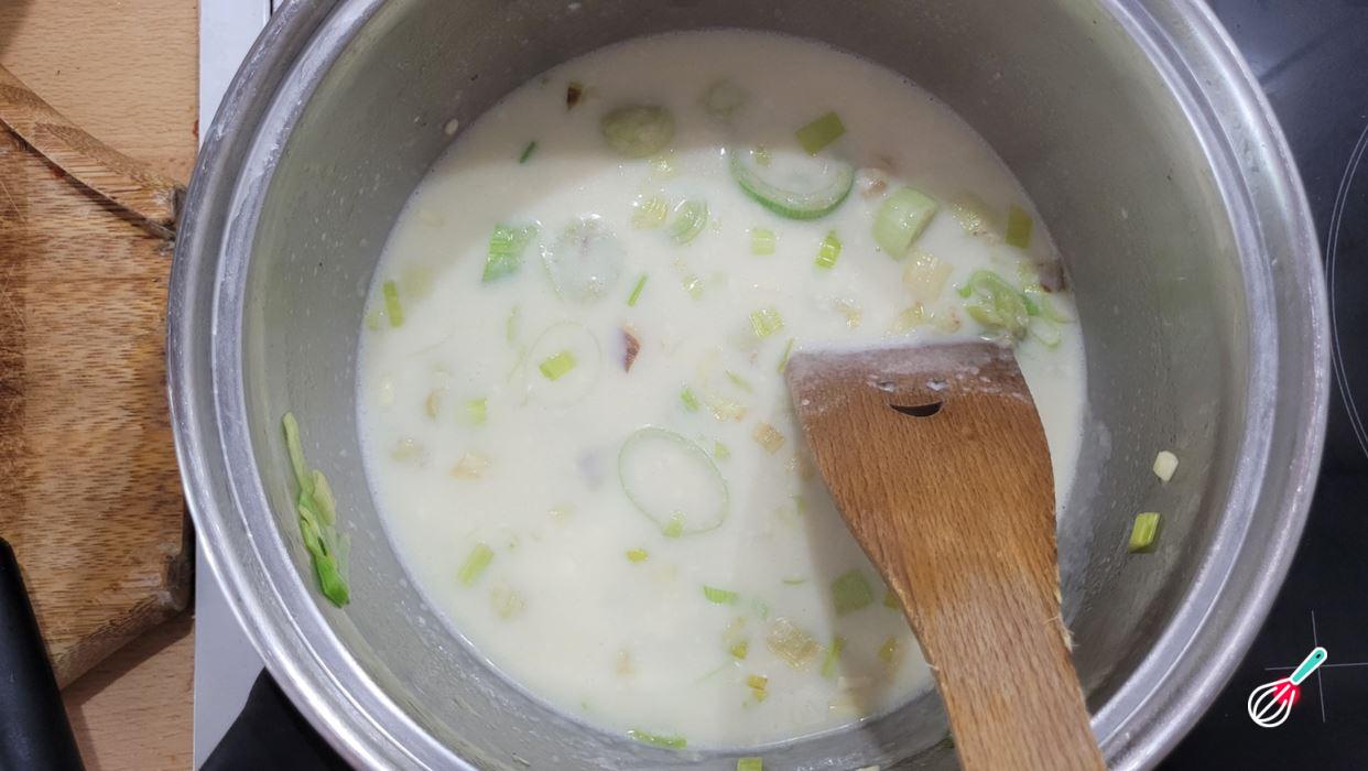 Deixe a farinha cozinhar e mudar ligeiramente de cor para não ficar com gosto de farinha.