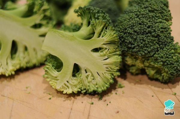 O primeiro passo para fazer esta receita de suflê de brócolis dukan é preparar os brócolis. Lave e corte e triture.