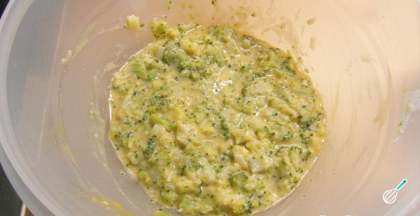 Separe as gemas das claras e de seguida adicione à taça das gemas a aveia, o leite e os brócolis picados.