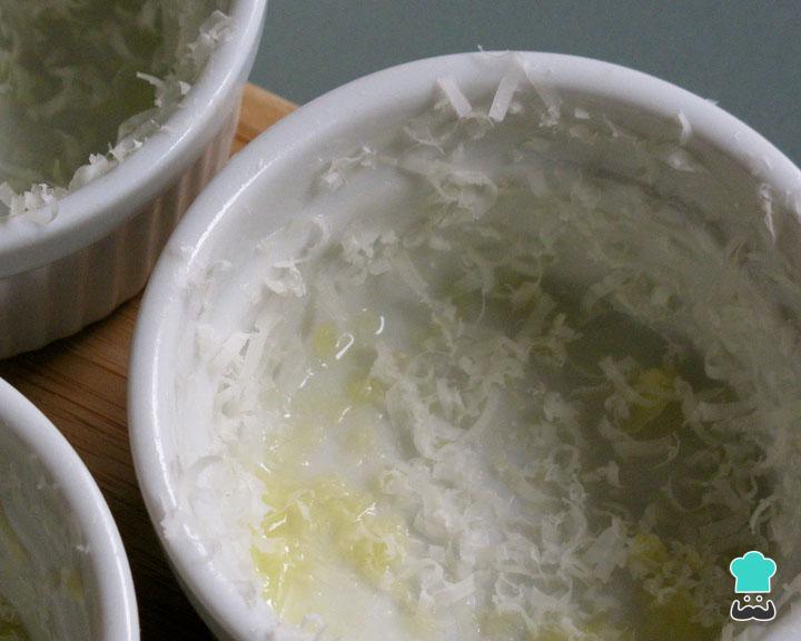 Dica: Se você quiser também pode polvilhar queijo ralado nos ramekins antes ou depois de adicionar a mistura de suflê.