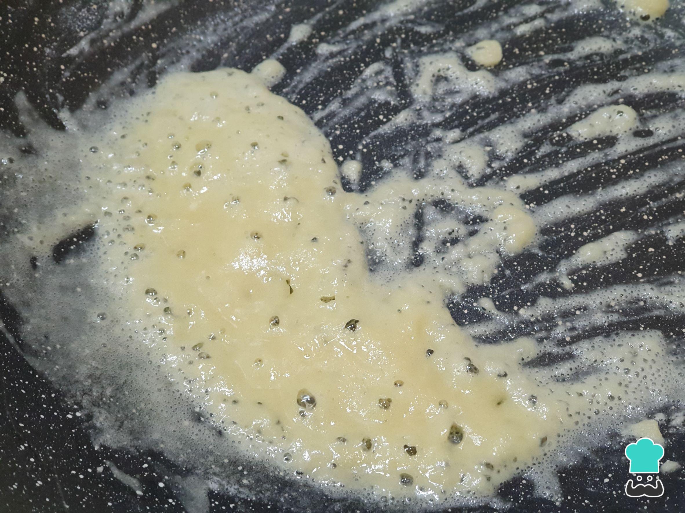 Em outra panela, prepare o béchamel: misture a manteiga com a farinha de trigo em fogo médio e mexa até que esteja bem cremosa, como na foto.