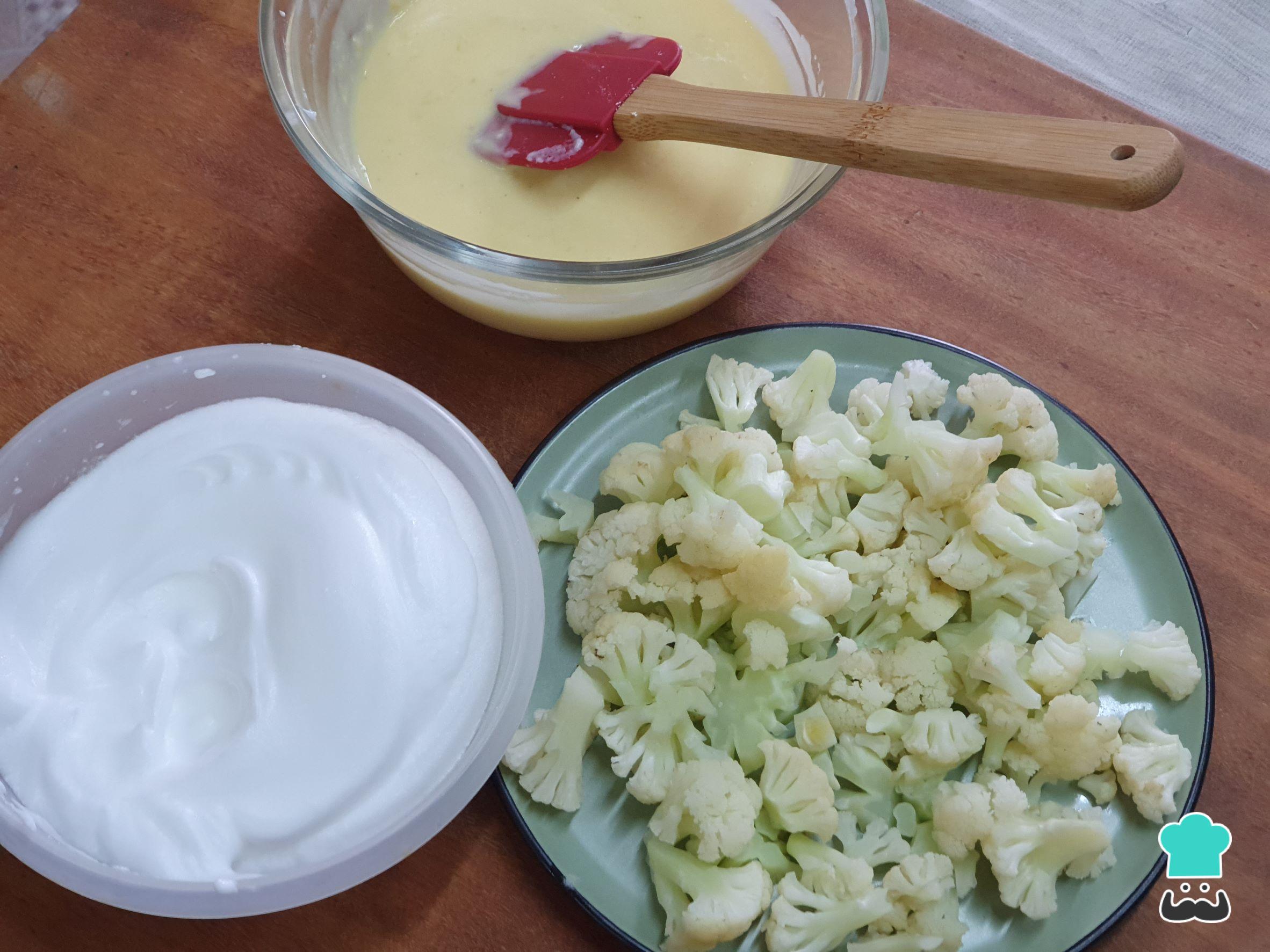 Quando o creme estiver pronto, as claras estiverem em neve e a couve-flor estiver cozida, é hora de misturar tudo para levar ao forno e finalizar!
