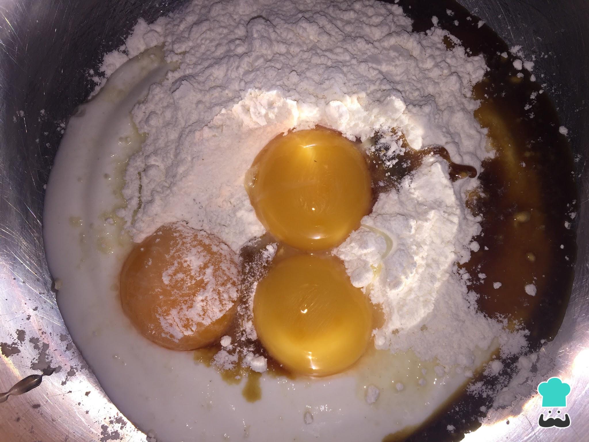 Em uma taça coloque a farinha, o açúcar, o iogurte, o aroma de baunilha, a pitada de sal, as gemas de ovo e misture até a massa ficar fofinha.