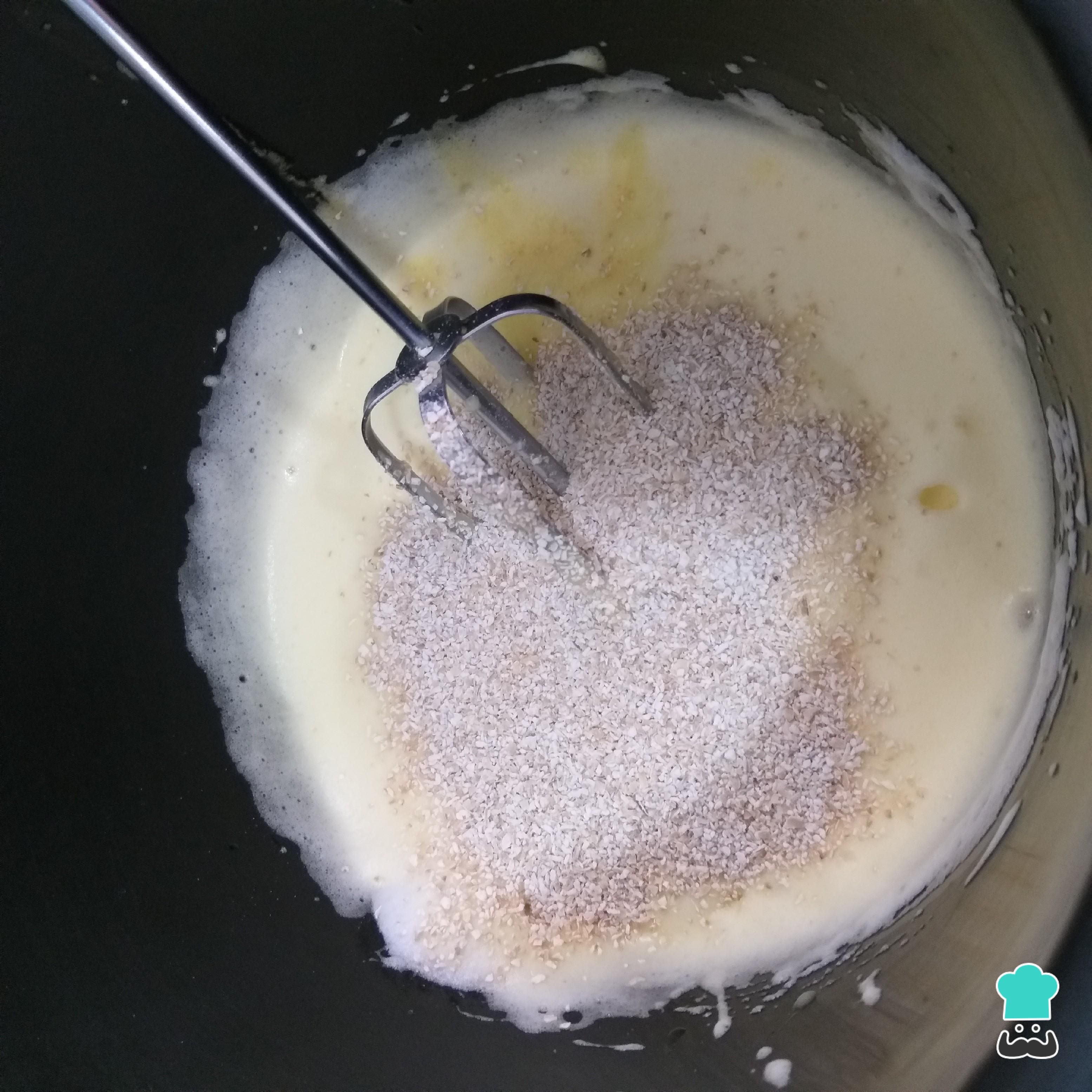 Misture a aveia delicadamente, para não perder o ar dessa misturinha de clara e gemas. Tempere com uma pitada de sal e reserve.