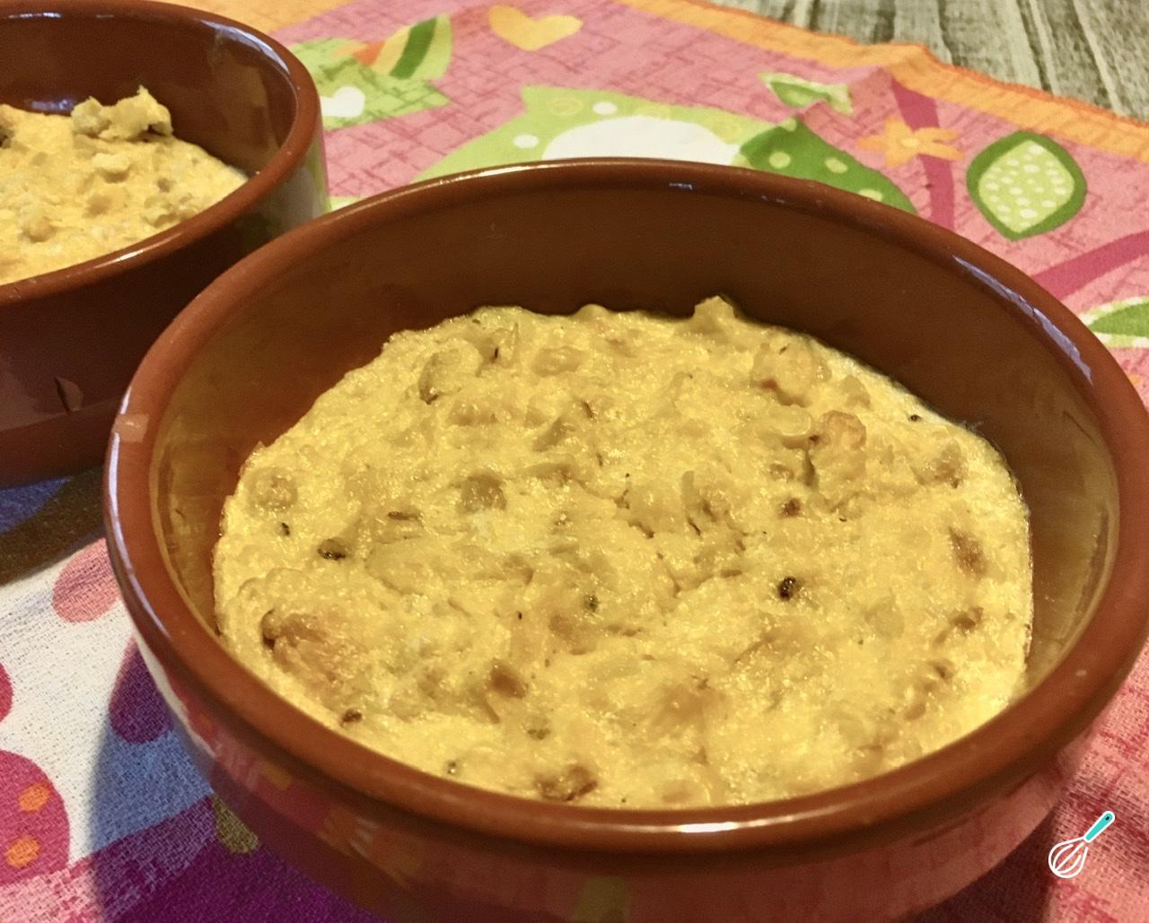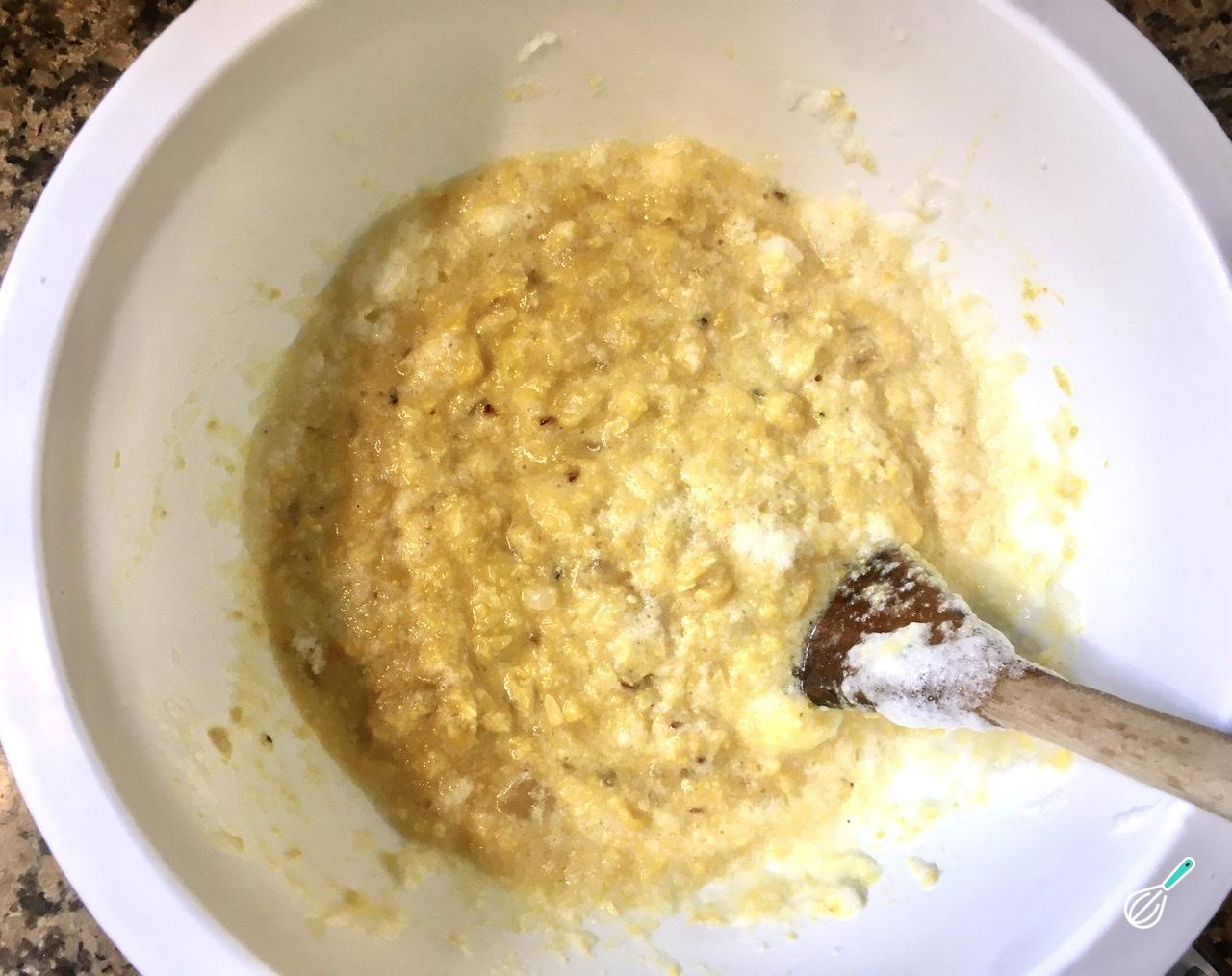 Dica: se quiser, também poderá cozinhar a cebola junto com pimentão ou tomate refogado, para um extra de sabor do suflê de milho!