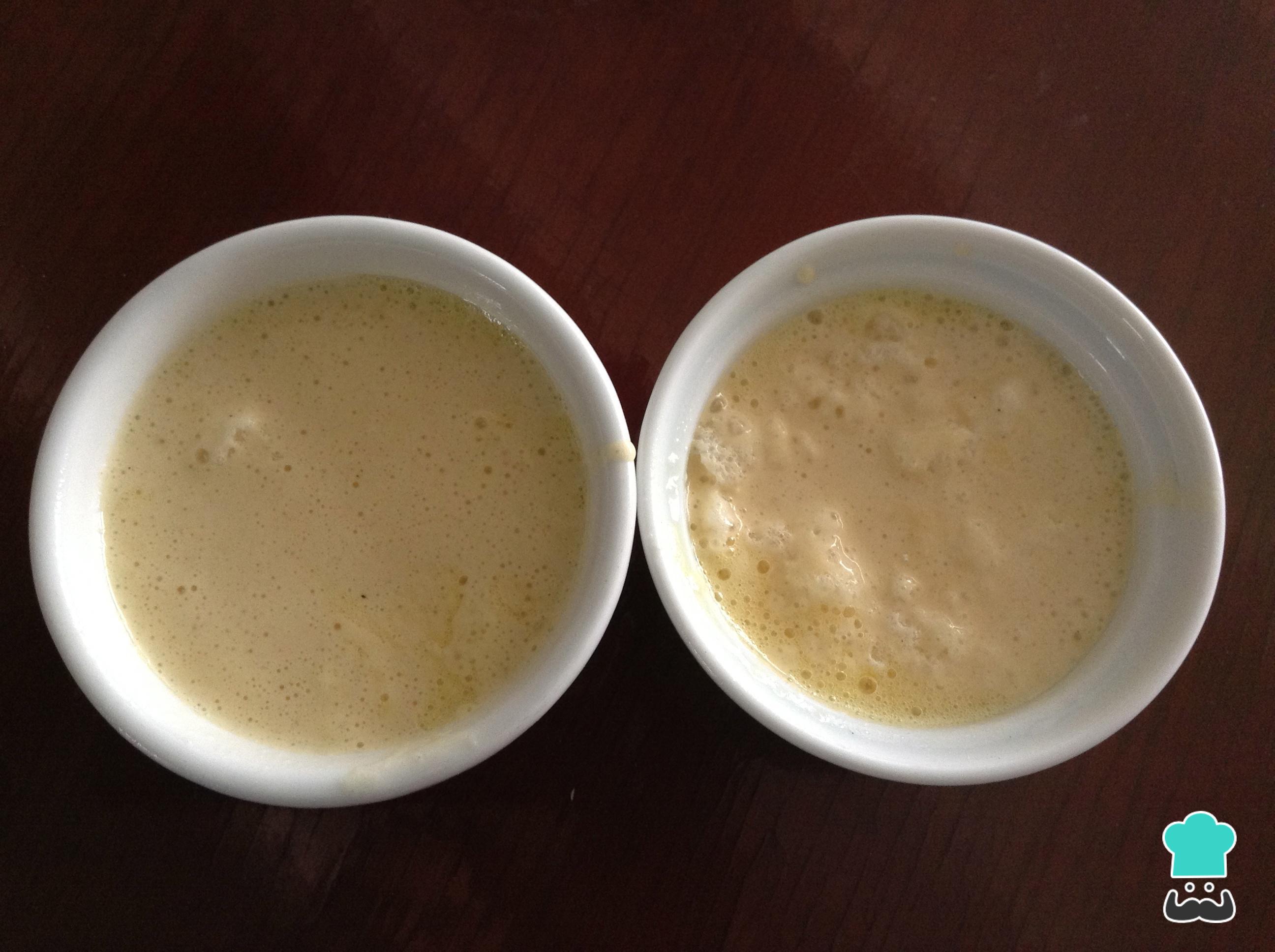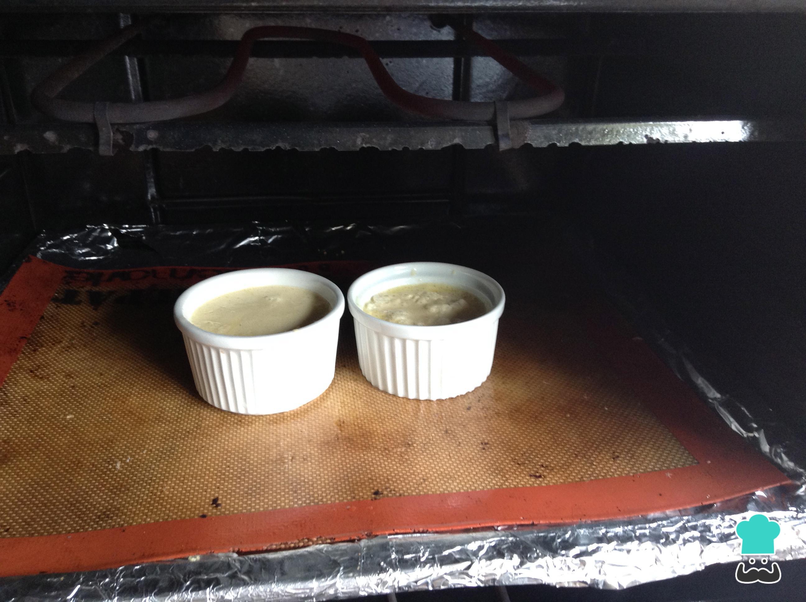 Coloque a mistura deste suflê caseiro em dois ramequins untados com óleo ou manteiga.