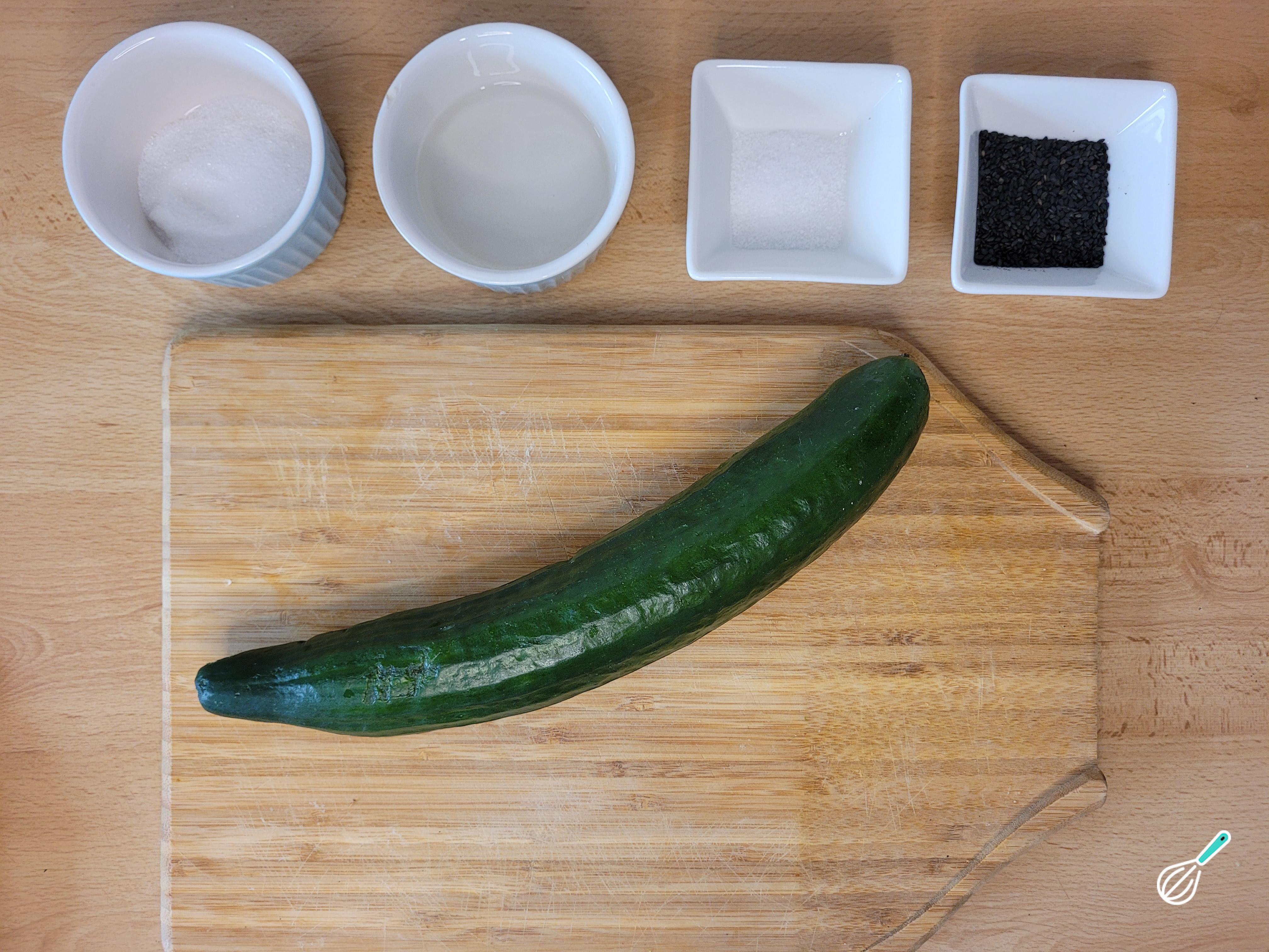 Comece separando todos os ingredientes necessários para fazer a seu Sunomono ou salada de pepino japonesa.