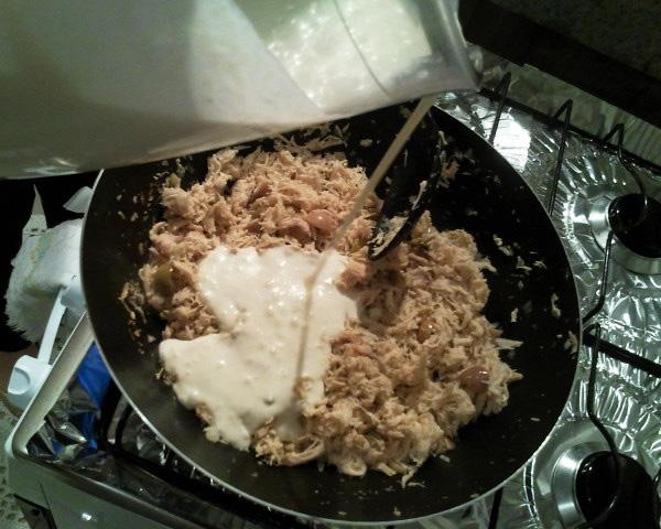 Dica: Esta receita também pode ser preparada com peito de frango cru picadinho. Para isso coloque o frango também após dourar a cebola e o alho e deixe por mais tempo, até mudar completamente de cor.