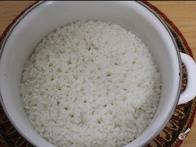 Depois do arroz cozinhado, retire do fogo e deixe o arroz repousar por 10 minutos, sempre com a panela tampada.