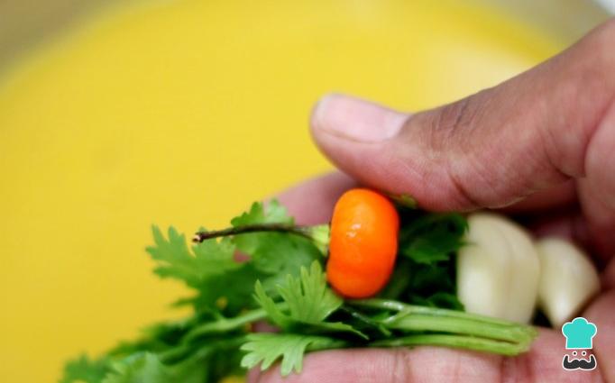Para preparar esta receita de tacacá do Pará, comece por levar ao fogo médio uma panela com o tucupi com os temperos: os alhos esmagados, a chicória e o sal. Quando levantar fervura, tampe e deixe cozinhar por 30 minutos.
