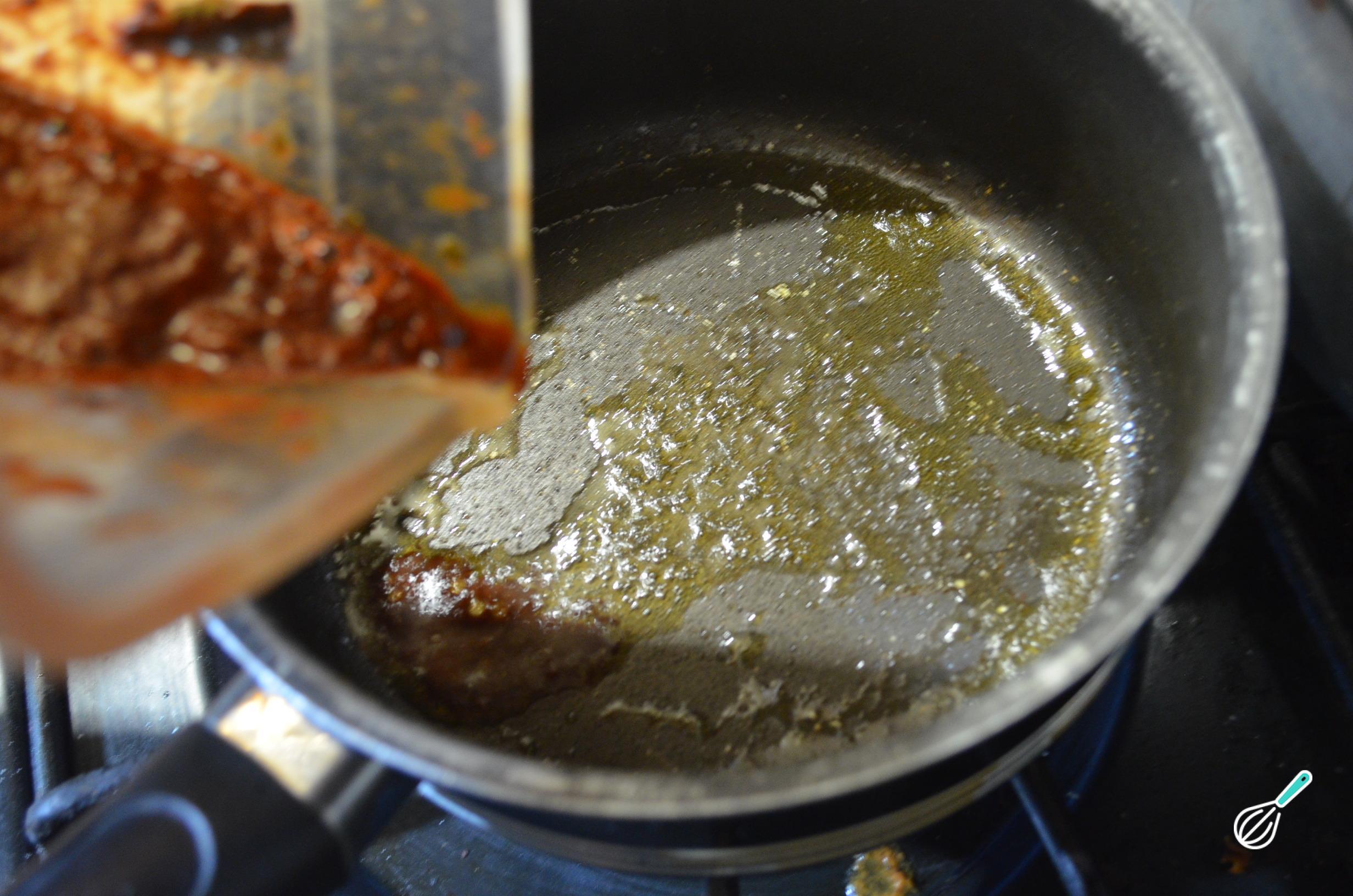 Em uma frigideira com um fiozinho de óleo aquecido em fogo médio, frite o molho até ferver. Nesse ponto, diminua para fogo baixo, destampe e deixe cozinhar por mais 5 minutos.