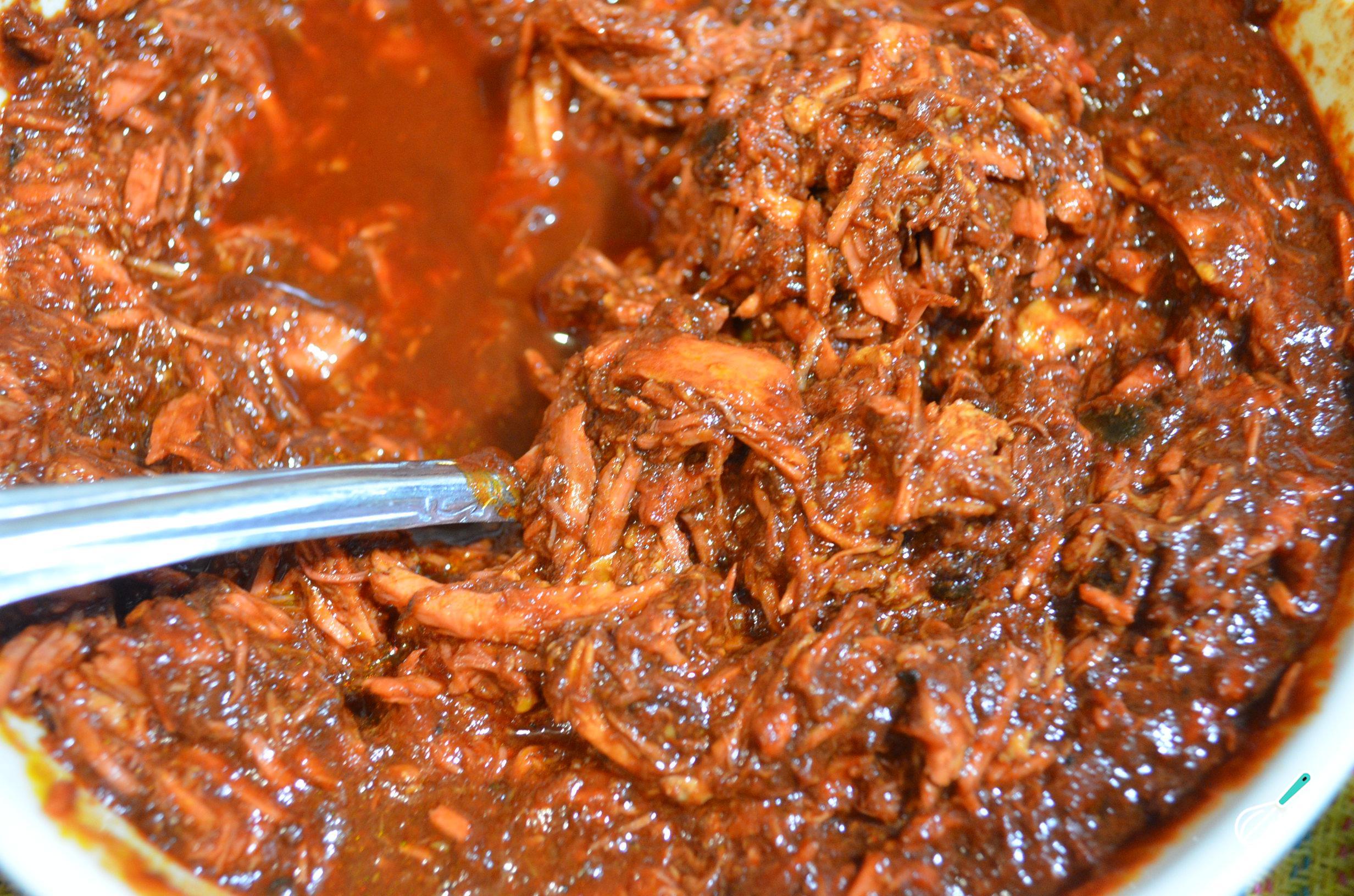 Lave a carne de porco com água fria. Coloque o molho refogado e morno em um recipiente e junte a carne. Deixe marinar na geladeira por 30 minutos. Separadamente, aqueça as tortilhas em uma frigideira sem gordura e reserve, cobrindo-as com um pano limpo.
