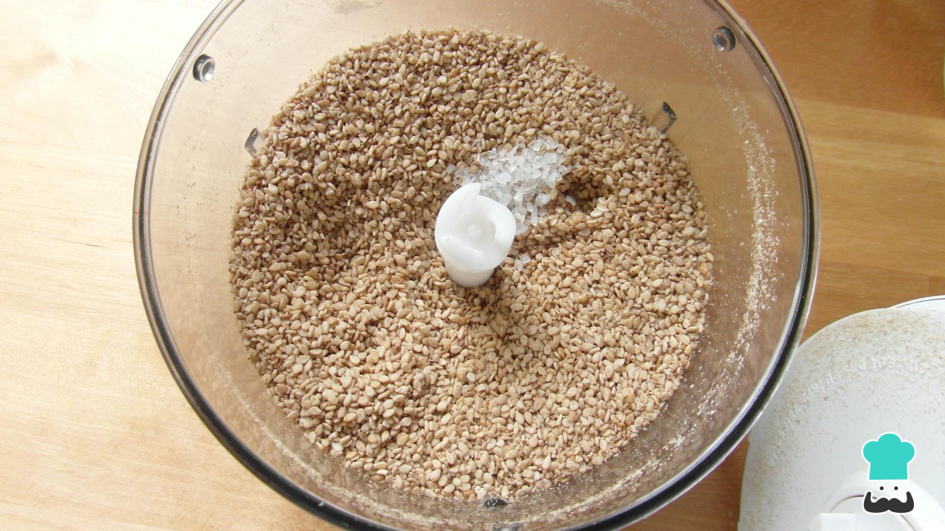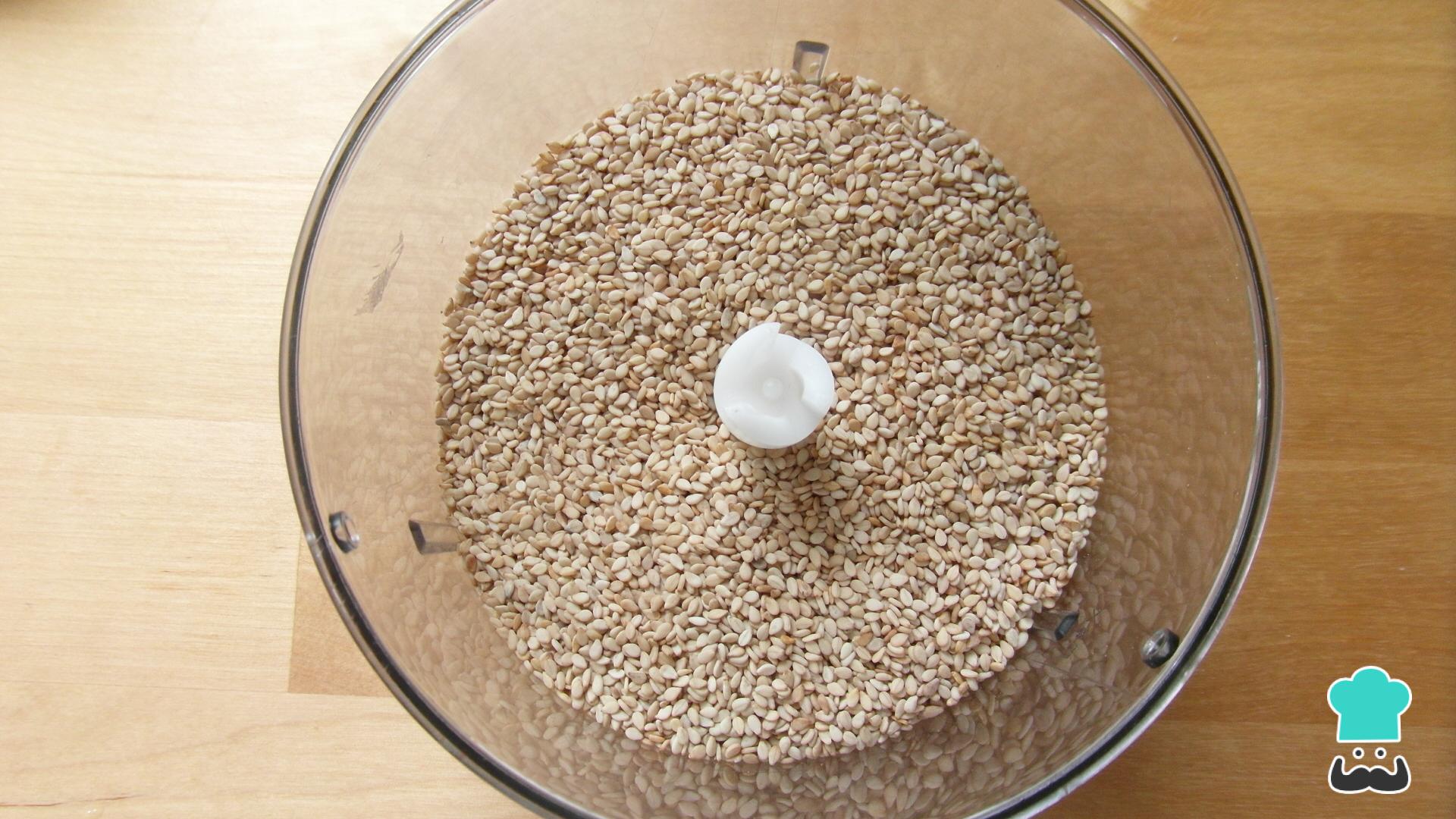 Coloque o gergelim no liquidificador ou processador de alimentos e bata por 1-2 minutos.