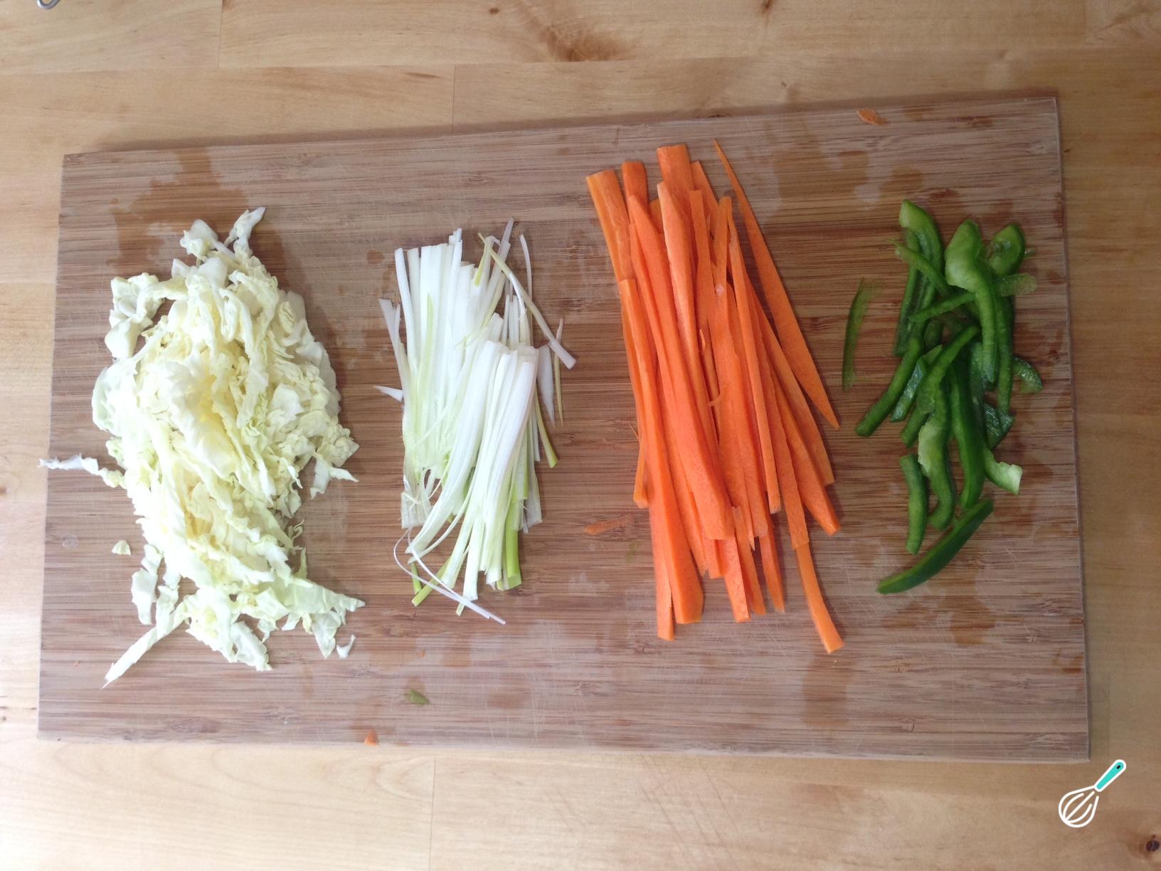 Em seguida descasque e corte os legumes em palitos, como na fotografia.