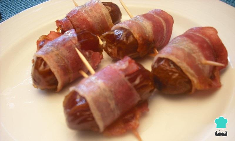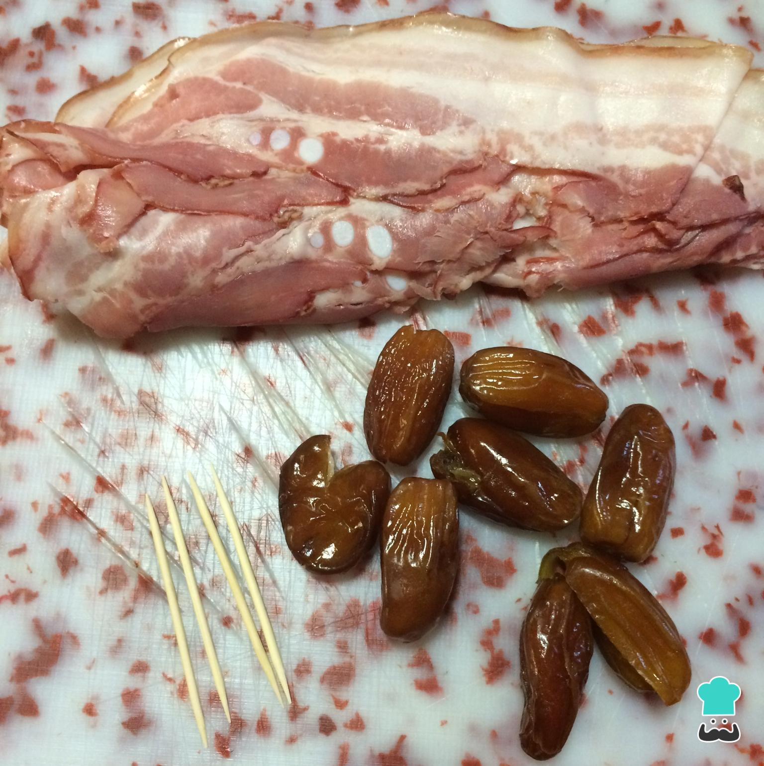 Prepare os ingredientes desta receita de tâmaras com bacon no forno.