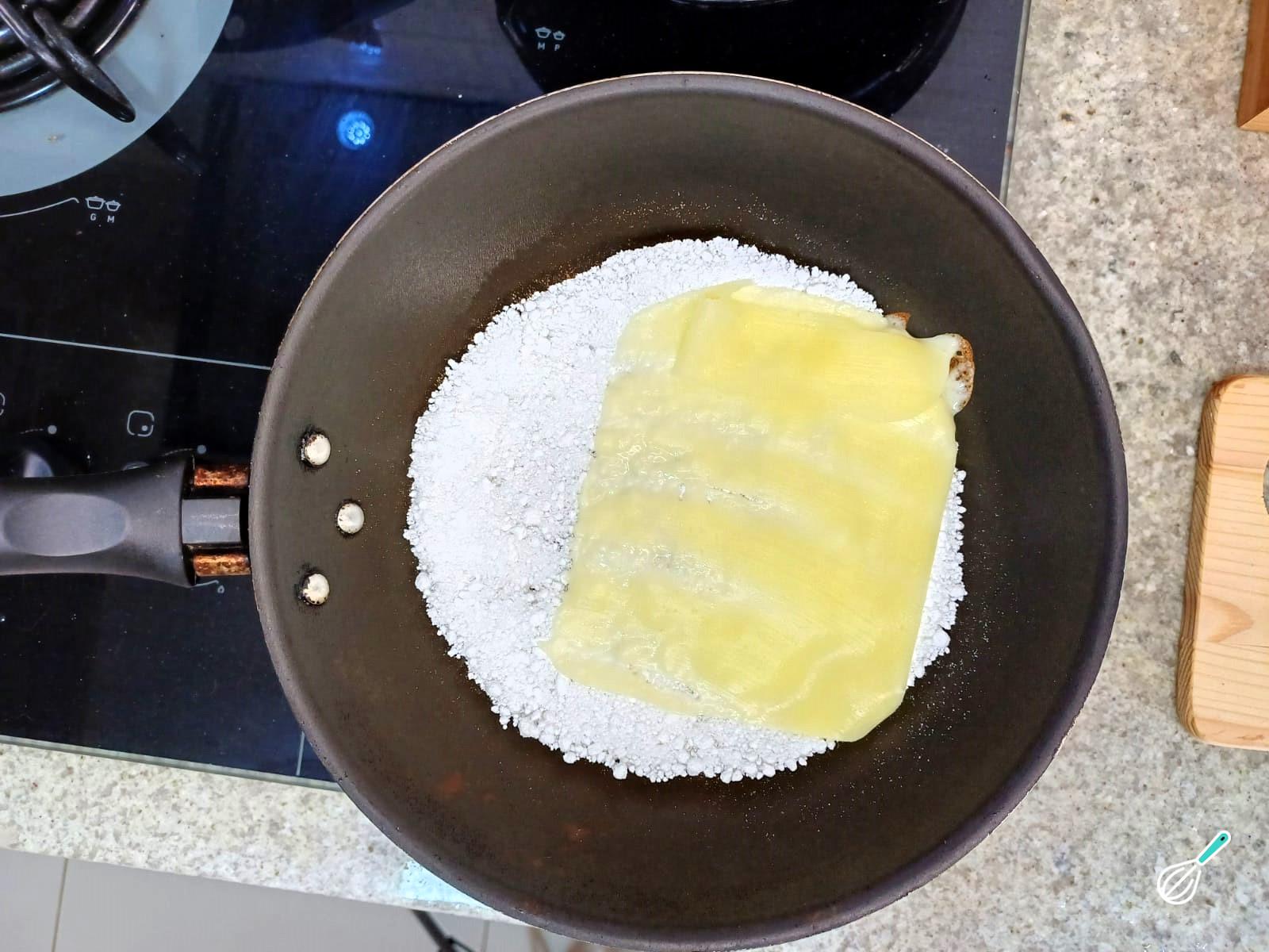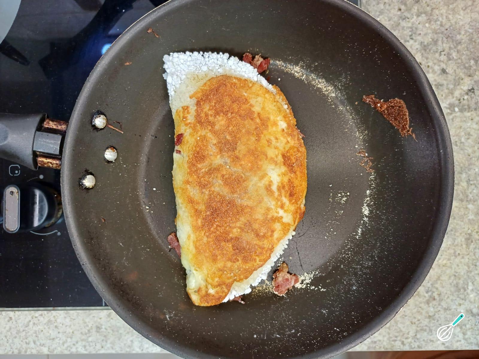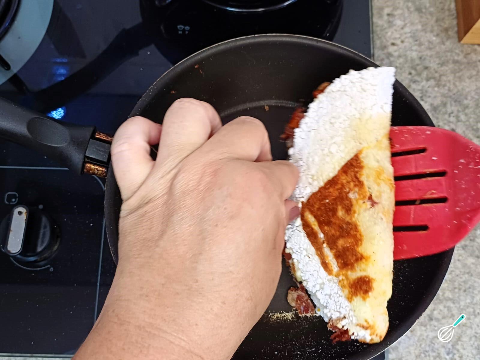 Dobre a tapioca ao meio, tampe a frigideira e deixe no fogo baixo por mais 2 minutos.