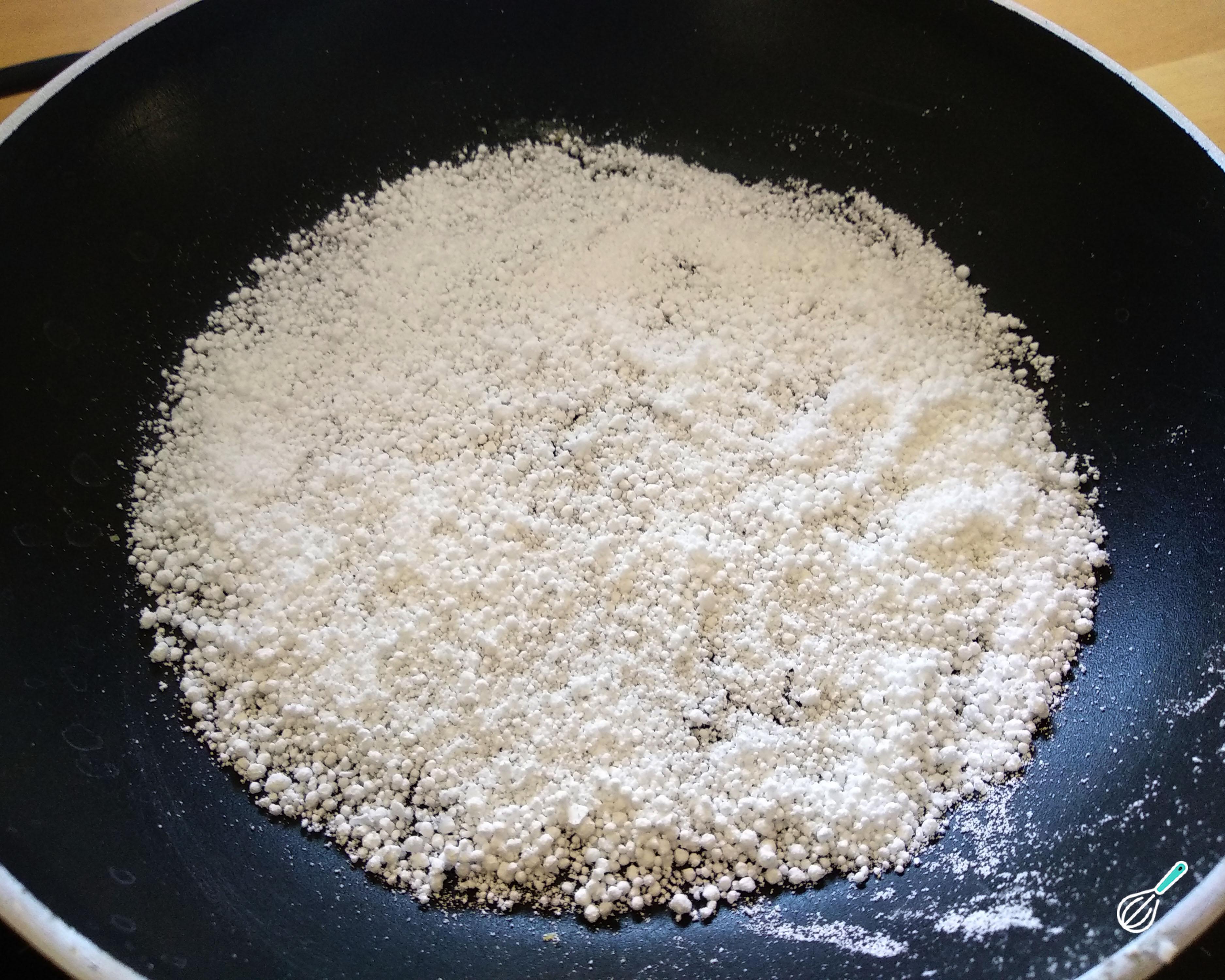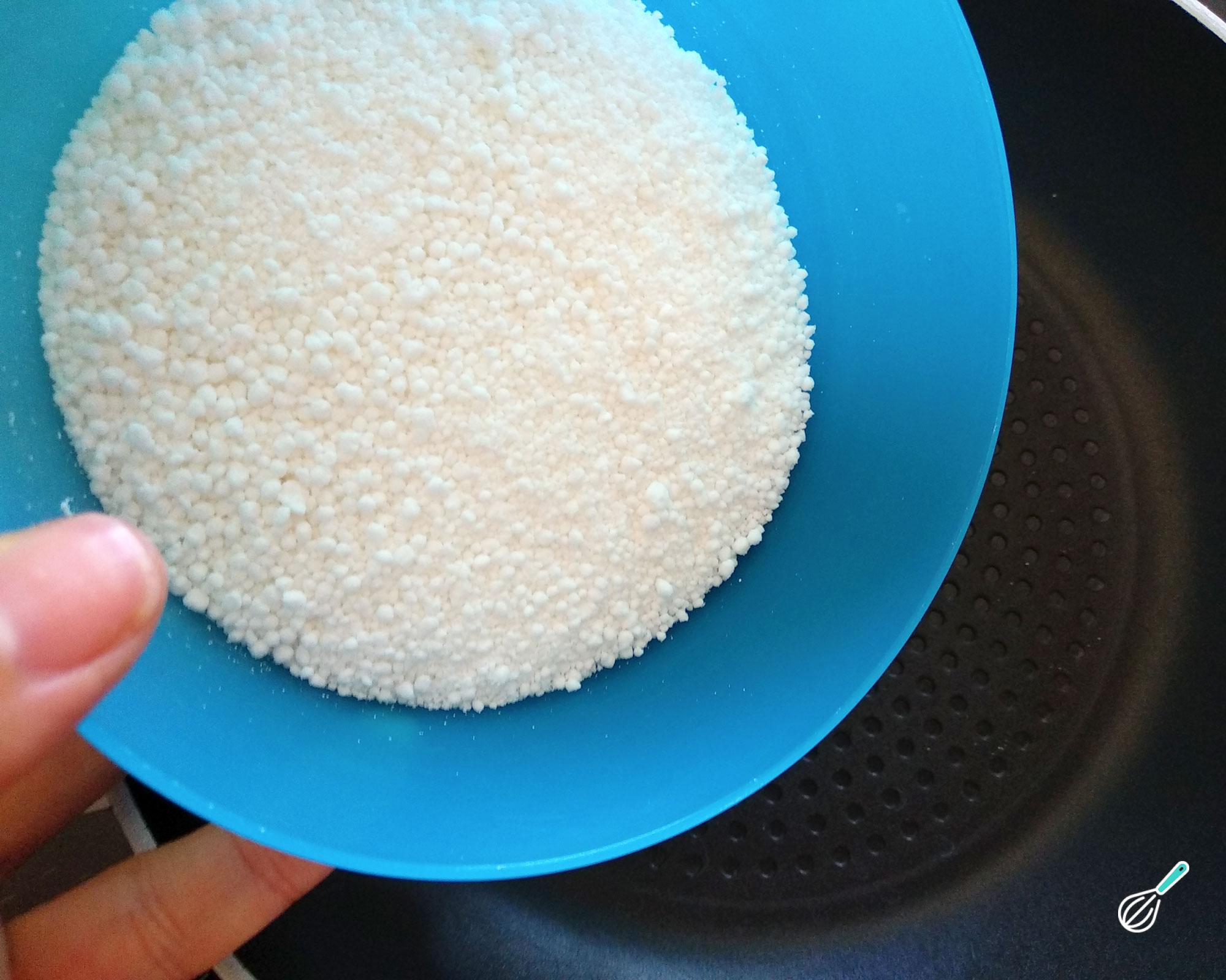 Dica: Se a sua goma de mandioca for muito granulada, com flocos grandes, passe por uma peneira antes de colocar na frigideira.