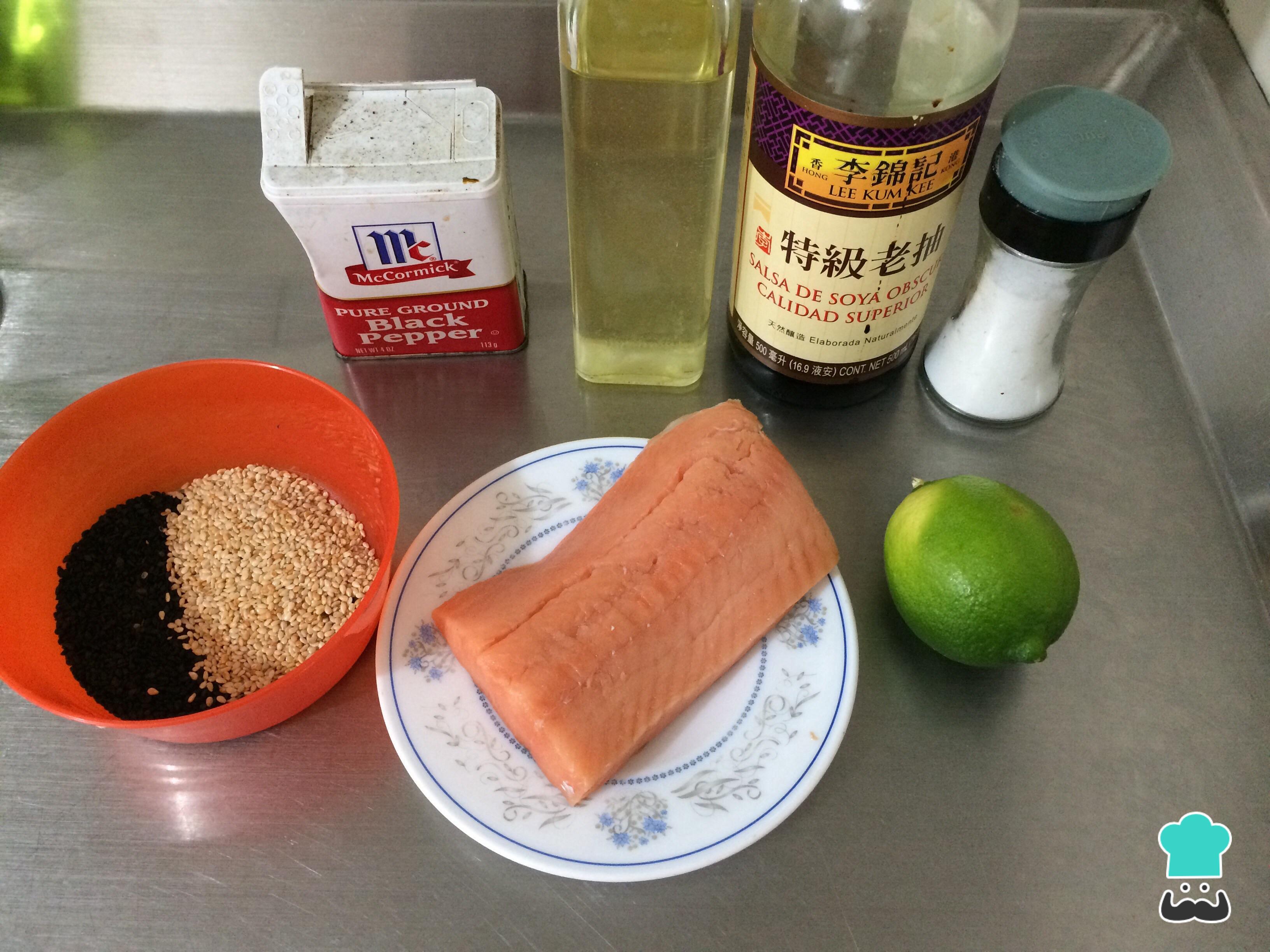 Para fazer o tataki de salmão, comece por reunir os ingredientes.