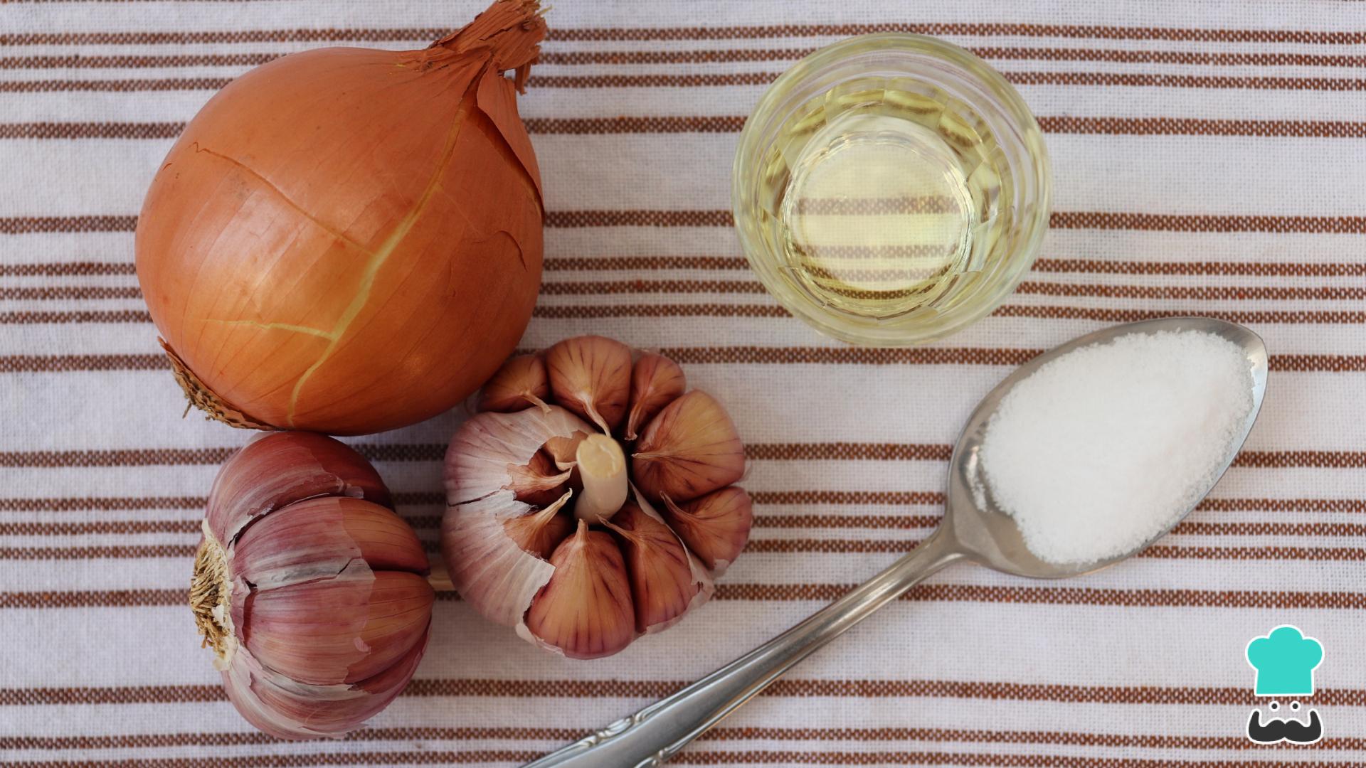 Separe os ingredientes. Essa é a parte mais trabalhosa do processo, já que você terá que descascar uma grande quantidade de alho e cebola de uma só vez. Mas acredite: isso vai economizar seu tempo na cozinha no dia a dia.