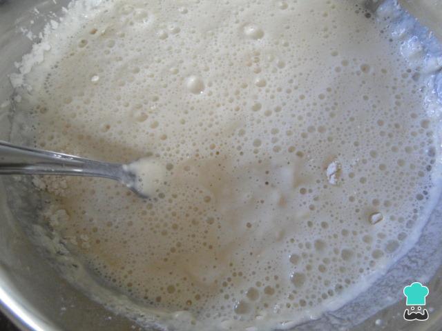 O primeiro passo do tempura de legumes crocante é preparar a massa. Para isso bata os ovos e acrescente a água, mexendo sem bater. Adicione a farinha e a maisena pouco a pouco e o sal e misture levemente (não se preocupe se formar grumos), reserve na geladeira por 30 minutos
