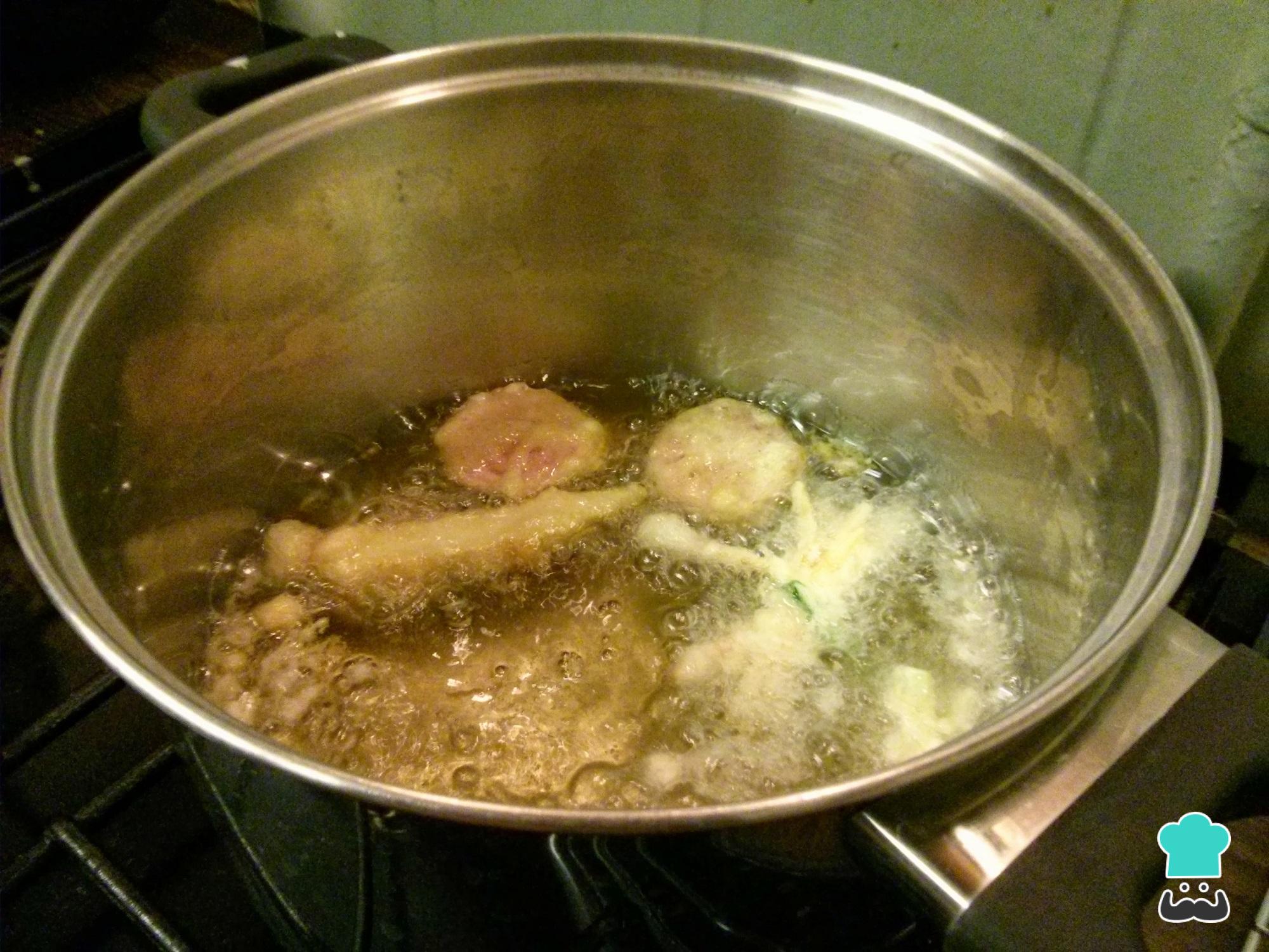 Após os 30 minutos de repouso, retire a massa da geladeira. Leve ao fogo uma panela com óleo e, assim que estiver bem quente, mergulhe os legumes um a um na massa e frite.