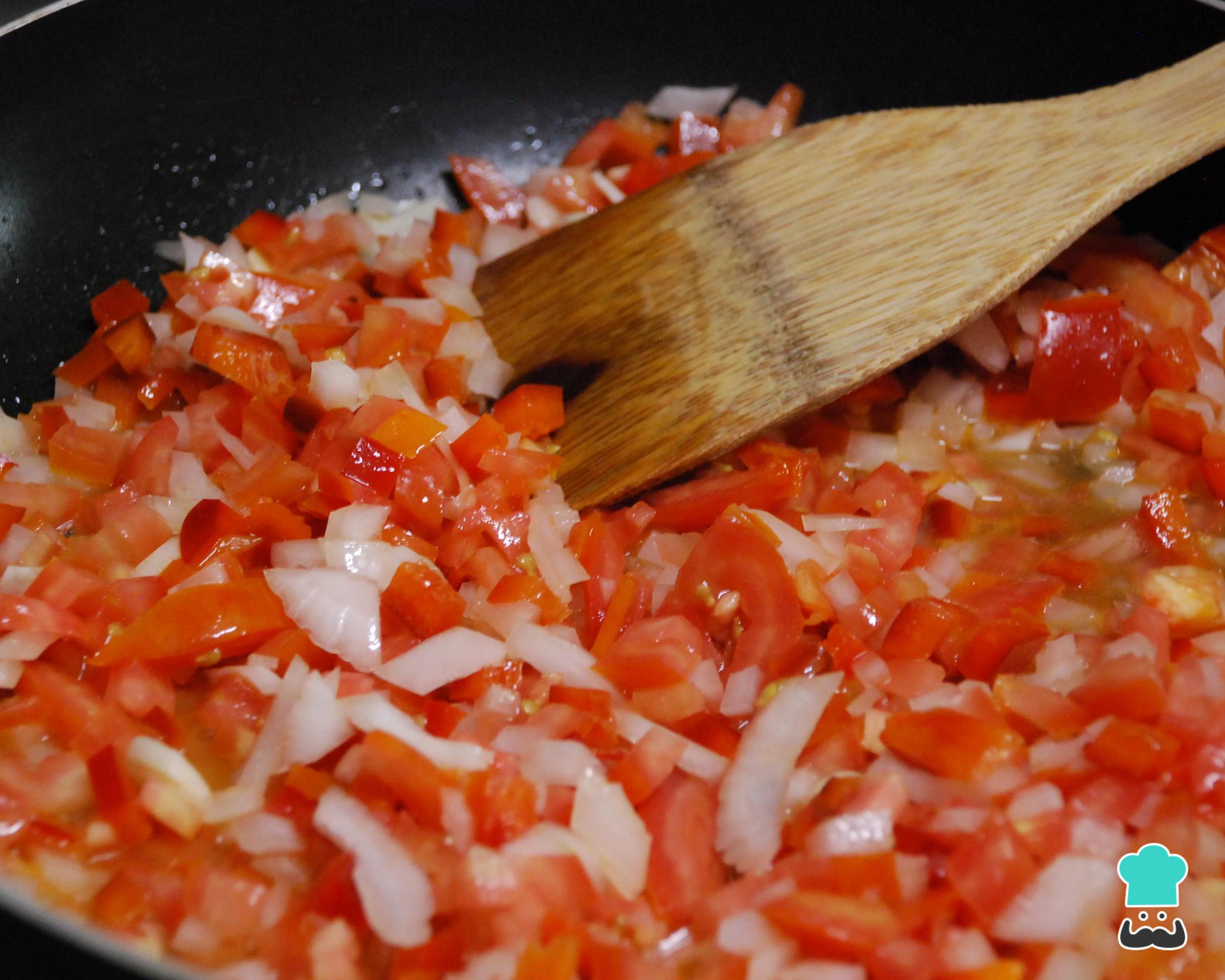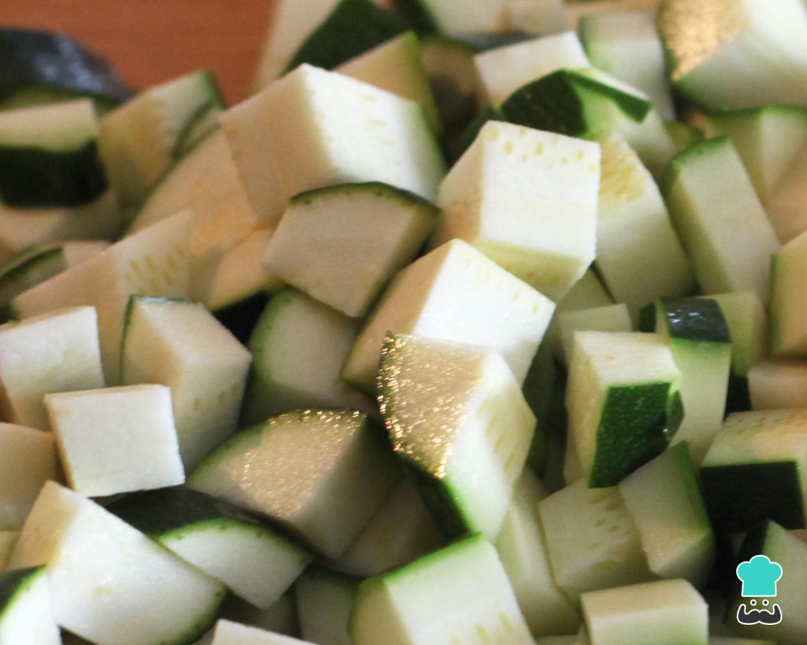 Prepare os legumes picando todos os pedacinhos. Recomendo picar a cebola finamente, sobretudo se você não gosta de trincar cebola. A abobrinha e os tomates podem ser picados em pedaços maiores e o espinafre não precisa picar.