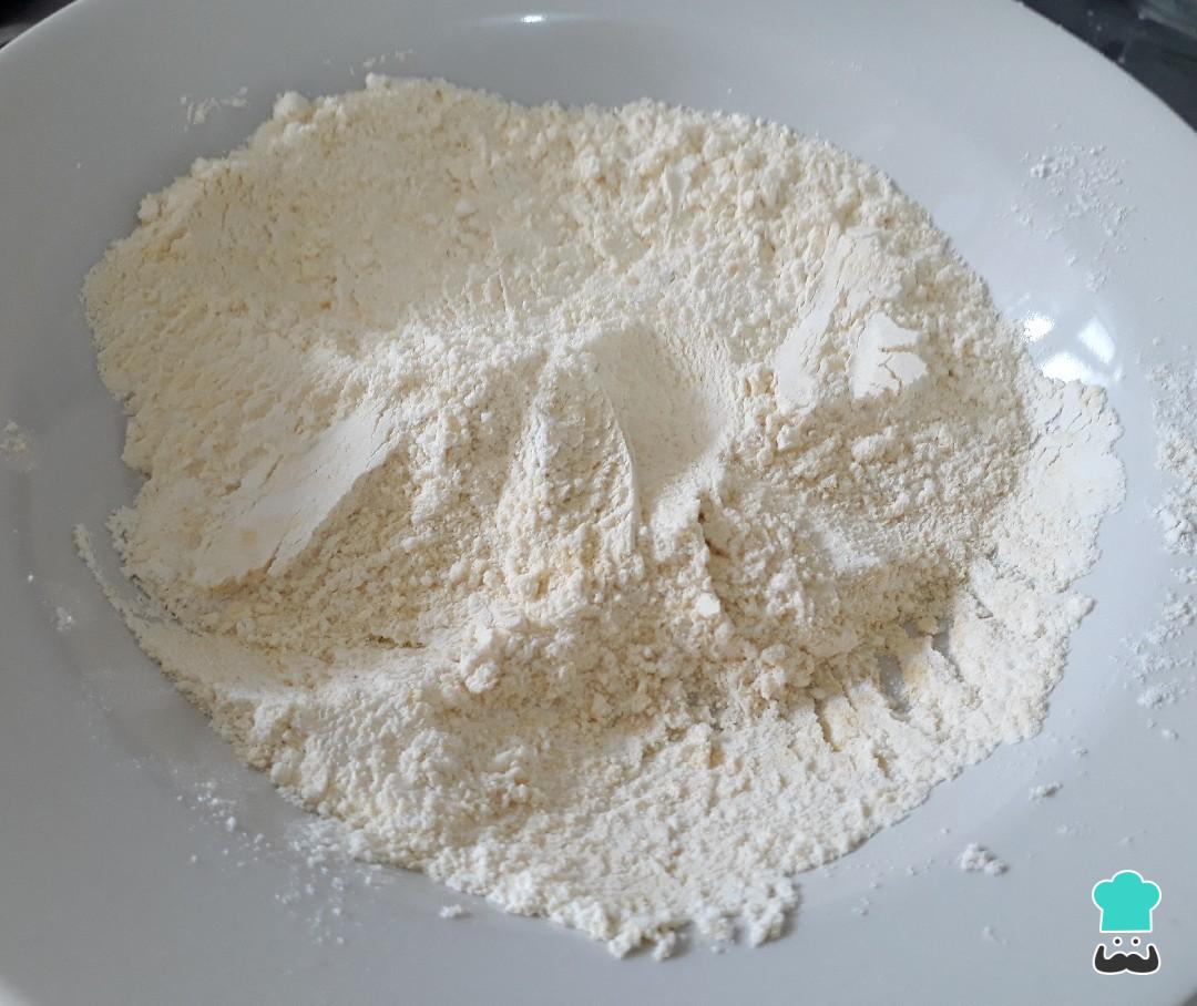 Em um recipiente misture bem a farinha de trigo com o fubá.