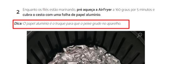 Se você gostou da receita de Tilápia na AirFryer sem grudar, sugerimos que entre na nossa categoria de Receitas de tilápia.