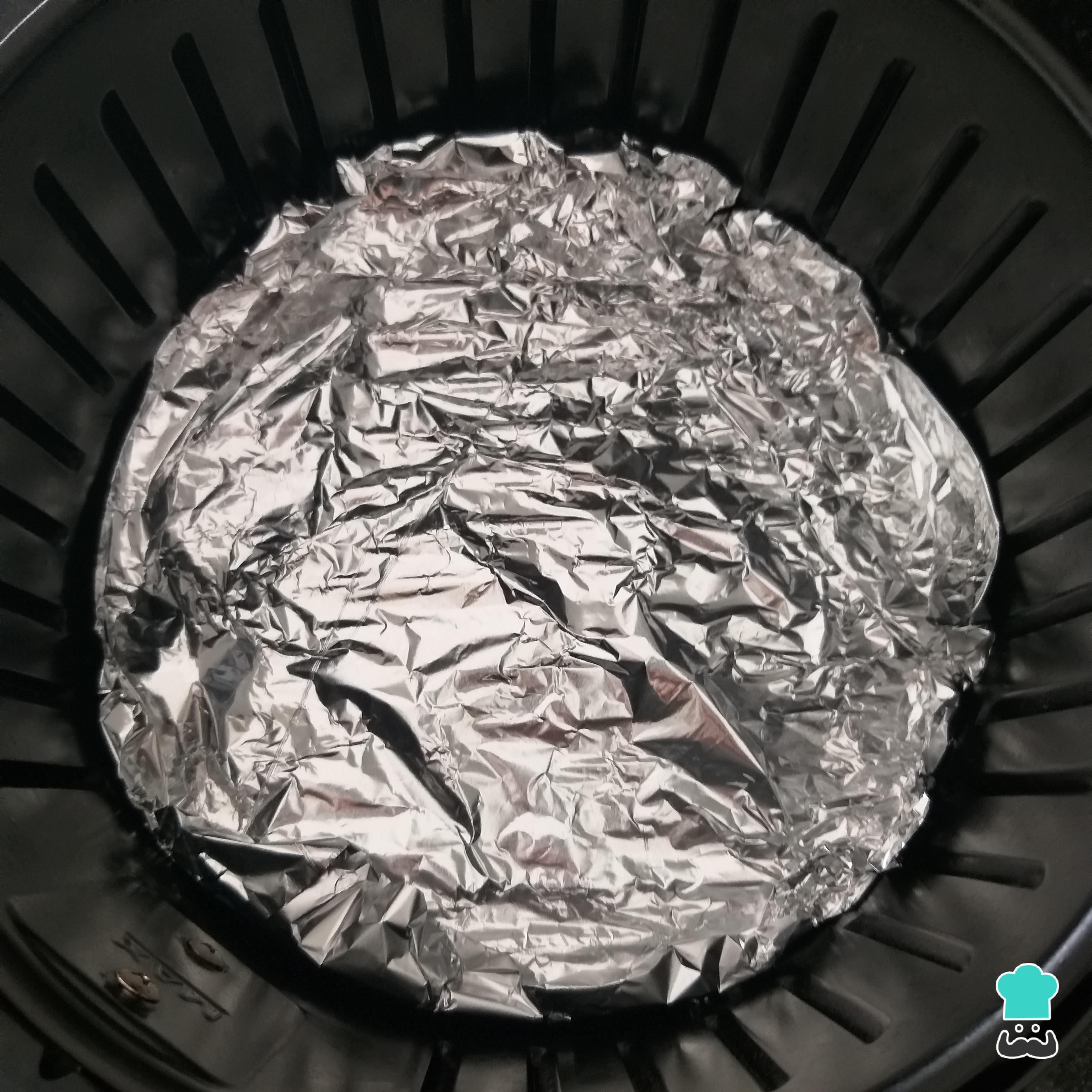Enquanto os filés estão marinando, pré aqueça a AirFryer a 160 graus por 5 minutos e cubra o cesto com uma folha de papel alumínio. Coloque o peixe SOBRE o papel alumínio e comece a assá-lo.