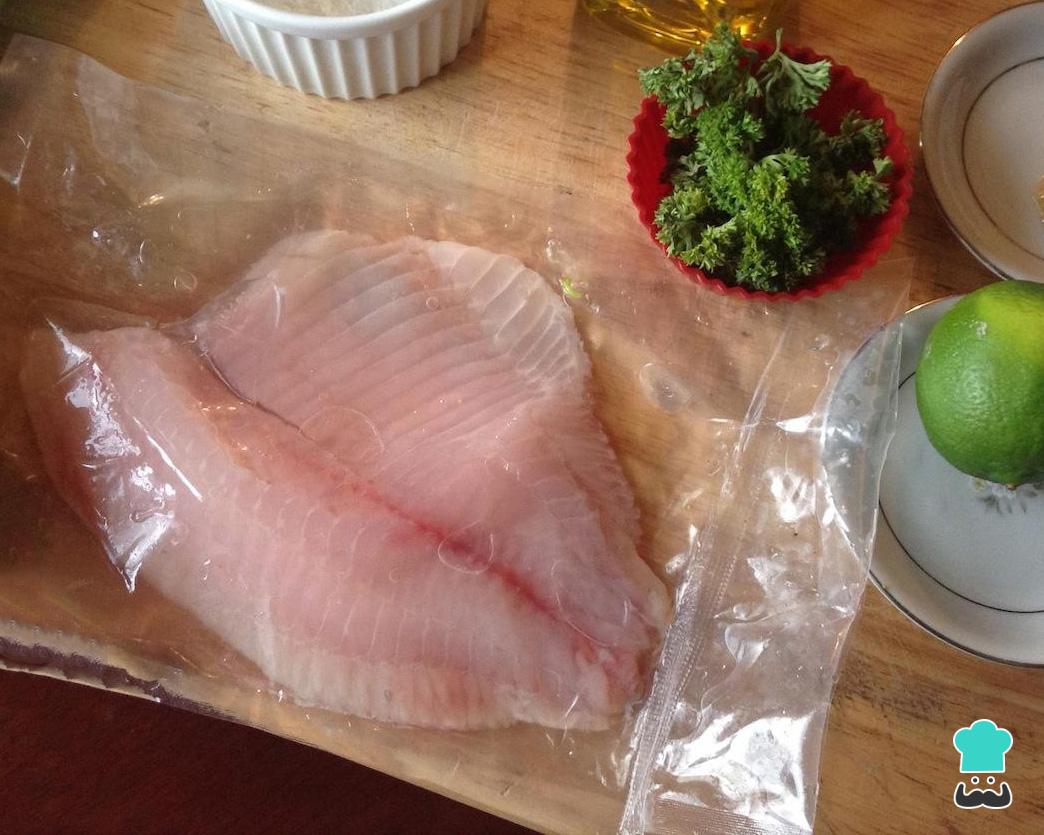 Reúna os ingredientes necessários ao preparo desta receita de tilápia na frigideira. Se a sua tilápia estiver congelada, não esqueça de retirar do congelador algumas horas antes de cozinhar.