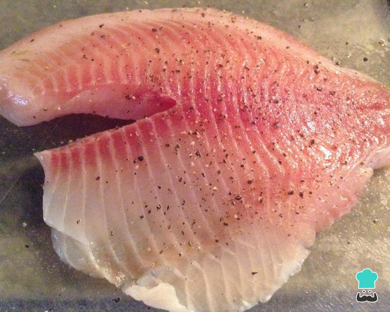 Em seguida tempere a tilápia ao seu gosto com sal e pimenta do reino.