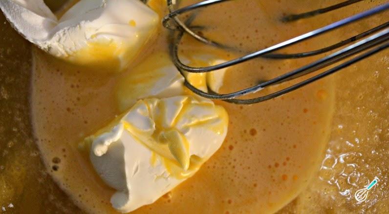 Após o passo anterior, adicione o queijo mascarpone à mistura de açúcar e ovos e continue batendo, até incorporar muito bem.