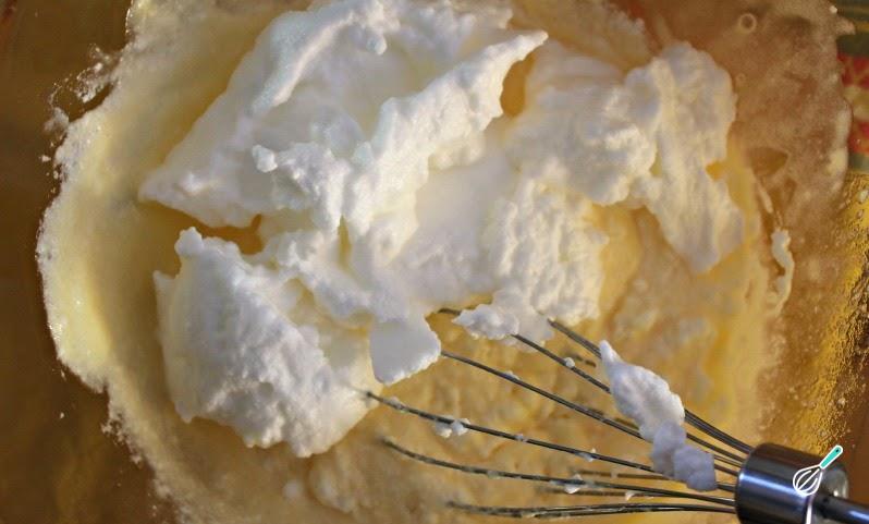 À parte, bata as claras em neve com uma pitada de sal. Adicione à mistura anterior aos poucos, incorporando com muito cuidado em movimentos suaves e envolventes, usando um batedor manual ou espátula.