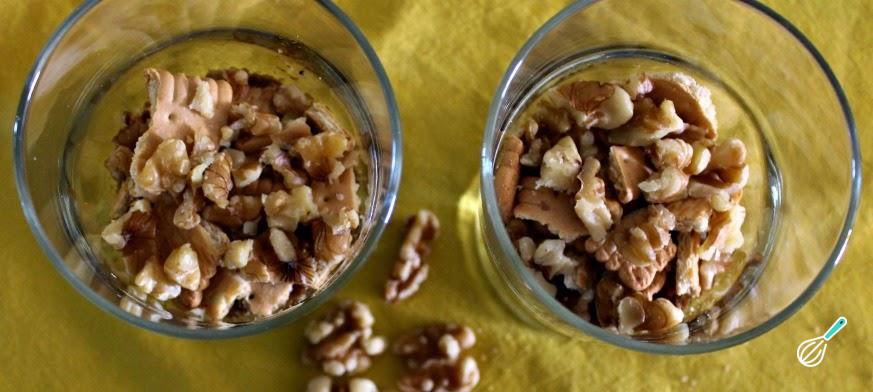 Sobre os biscoitos, acrescente as nozes picadas, que irão conferir um toque crocante perfeito a esta sobremesa!