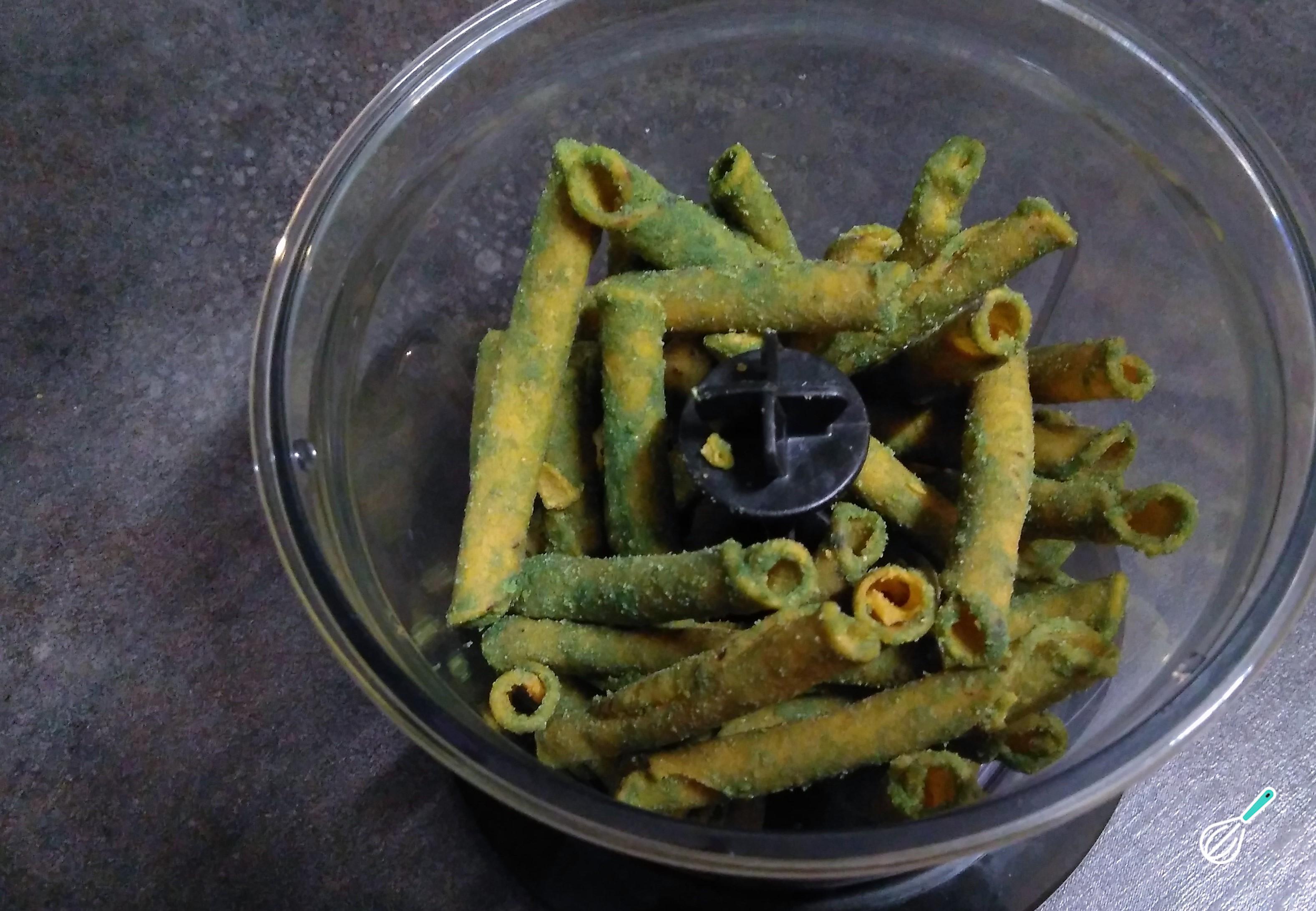 Dica: Se não você quiser usar salgadinhos, pode usar apenas pão ralado mas, nesse caso, acrescente algumas especiarias como páprica, açafrão e cominho.