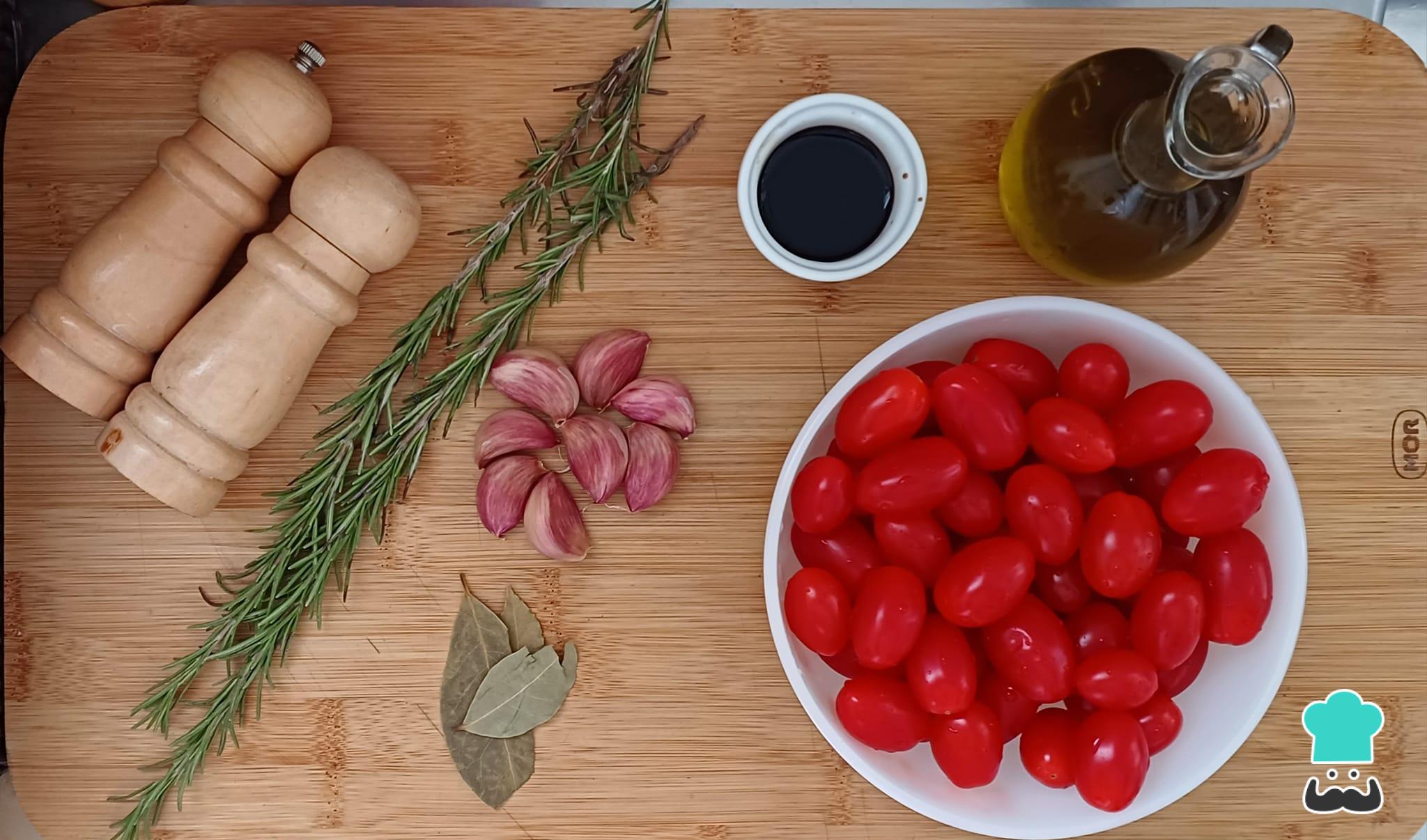 Separe todos os ingredientes necessários para o preparo do tomate confitado.