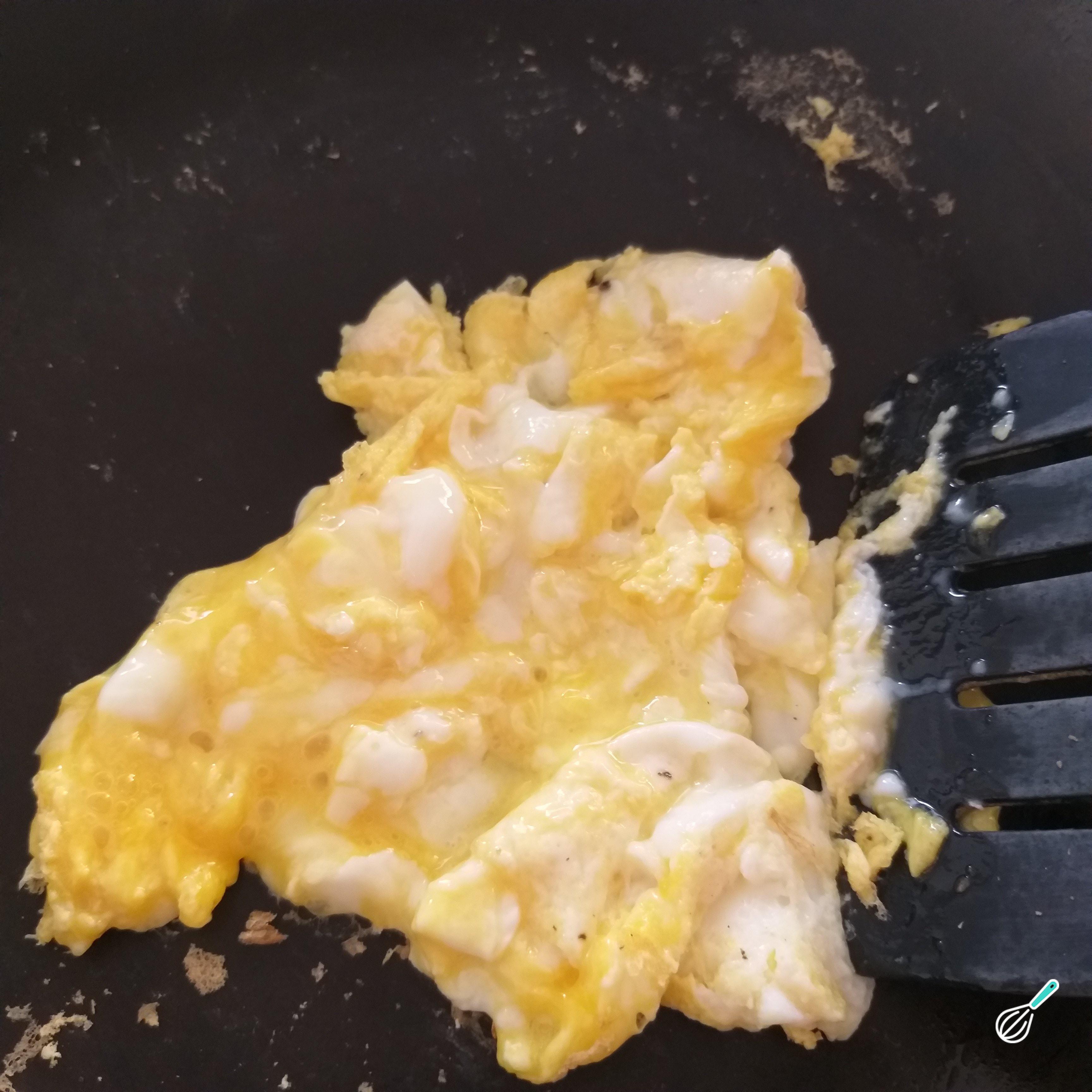Mexa com uma espátula e reserve. Este é o ovo mexido que iremos servir na nossa torrada de abacate!