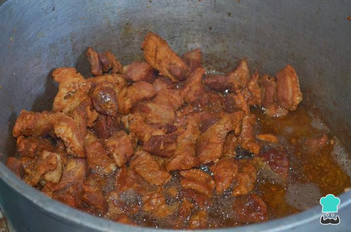 Dica: Reserve a carne e gordura (banha) dos torresmos para preparar outros pratos.