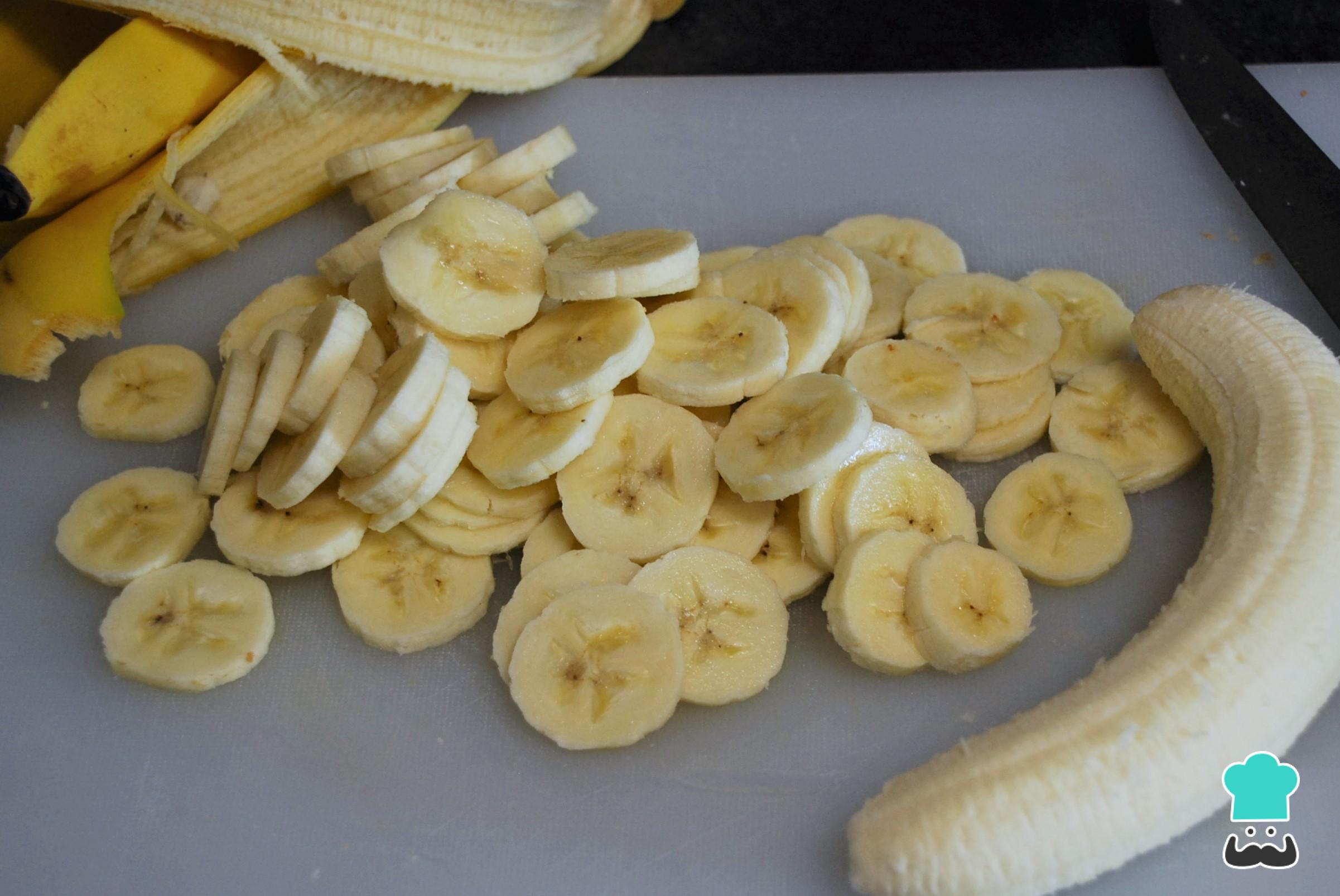 Para terminar de montar a torta banoffee, corte as bananas em rodelas não muito finas nem muito grossas.