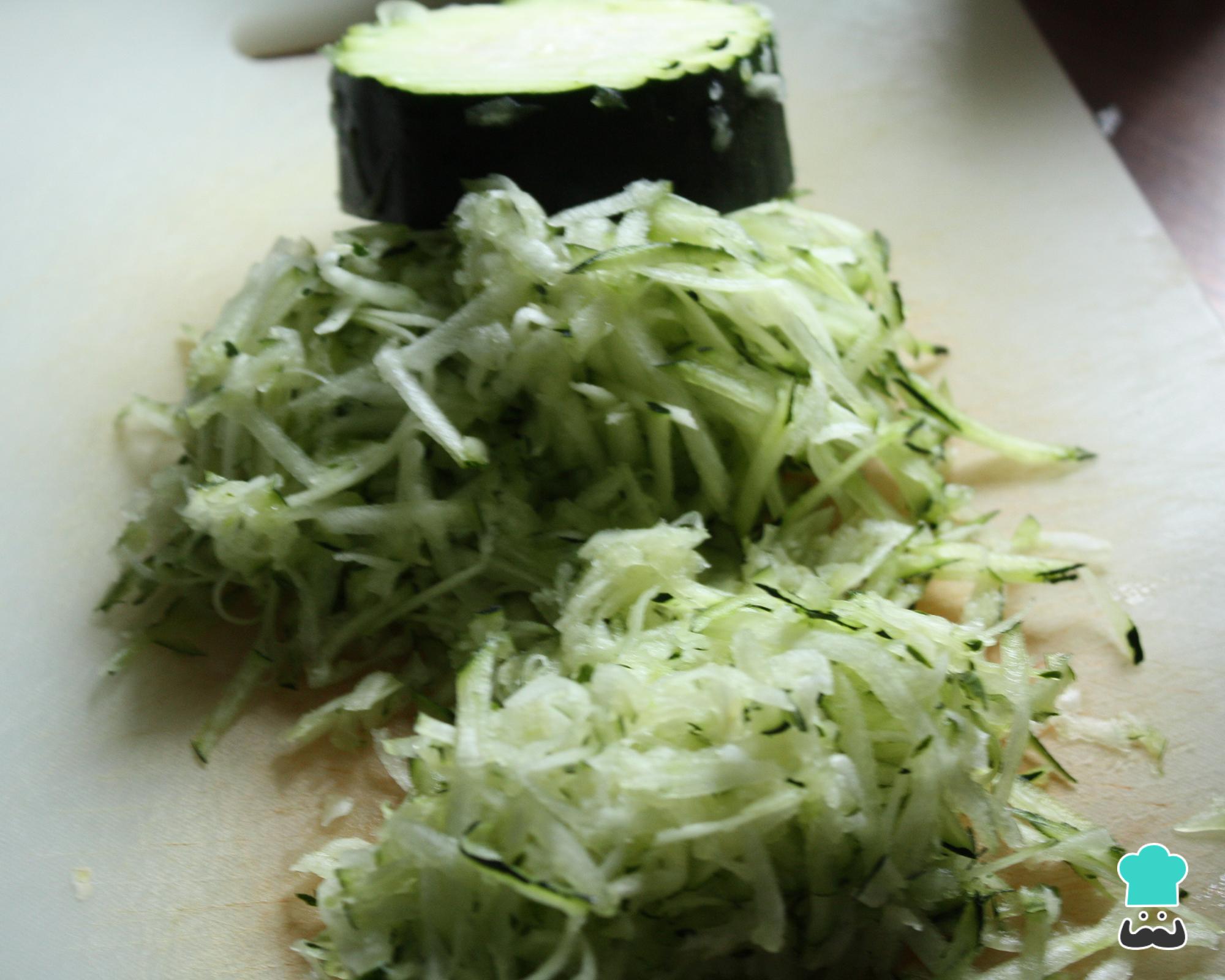 Comece por preparar os ingredientes: rale a abobrinha reservando algumas rodelas para decorar a torta. Pique a cebola, o tomate e os alhos.