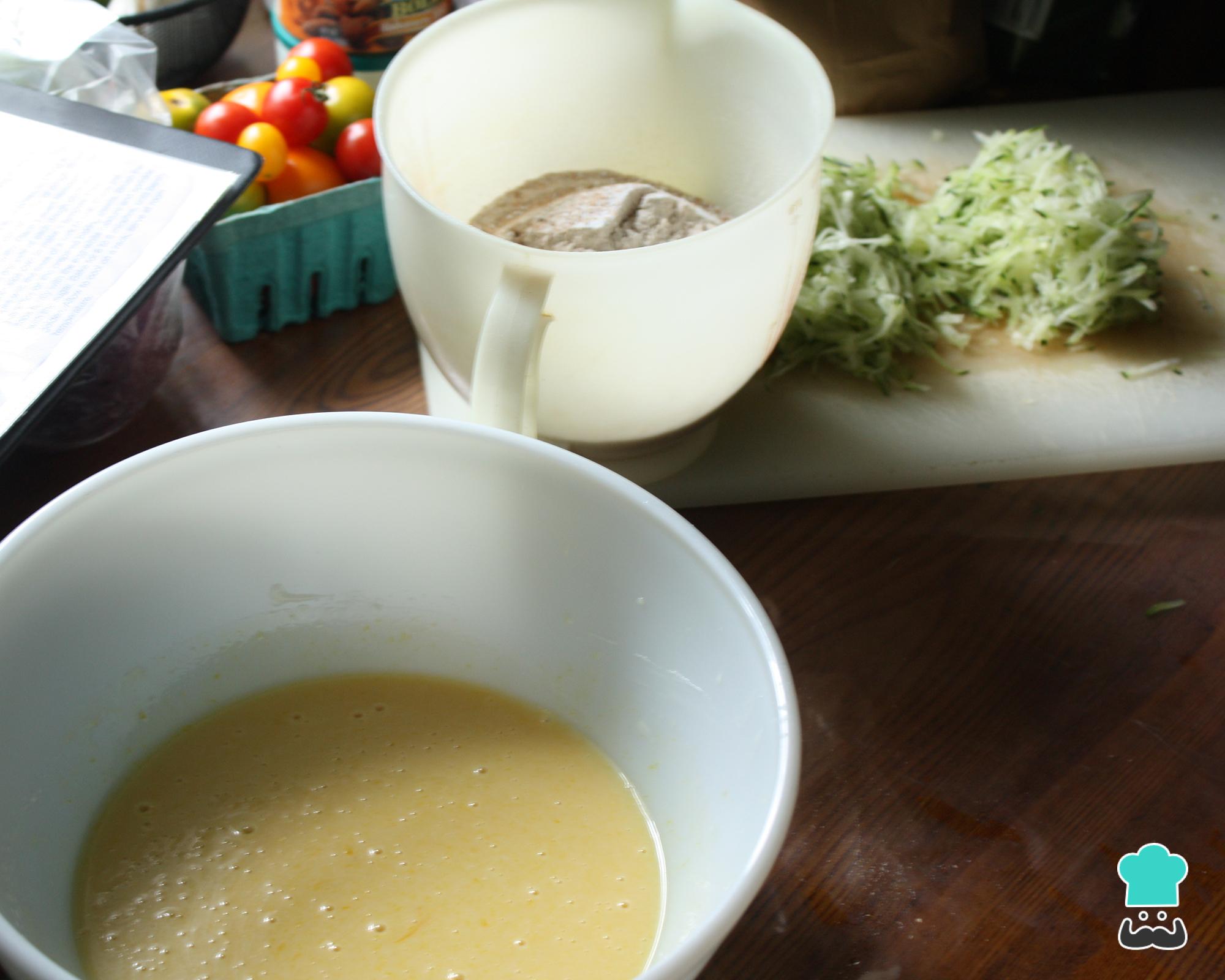 Coloque todos os ingredientes numa tigela e misture até virar uma massa espessa e sem grumos de farinha.