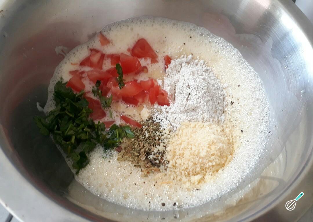 Depois adicione a abobrinha e o restante dos ingredientes. Misture tudo muito bem e acerte o sabor a gosto.