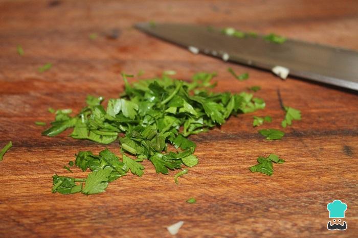 Depois do passo anterior lave a salsinha, seque e pique finamente. Coloque na abobrinha, misture e retire do fogo.