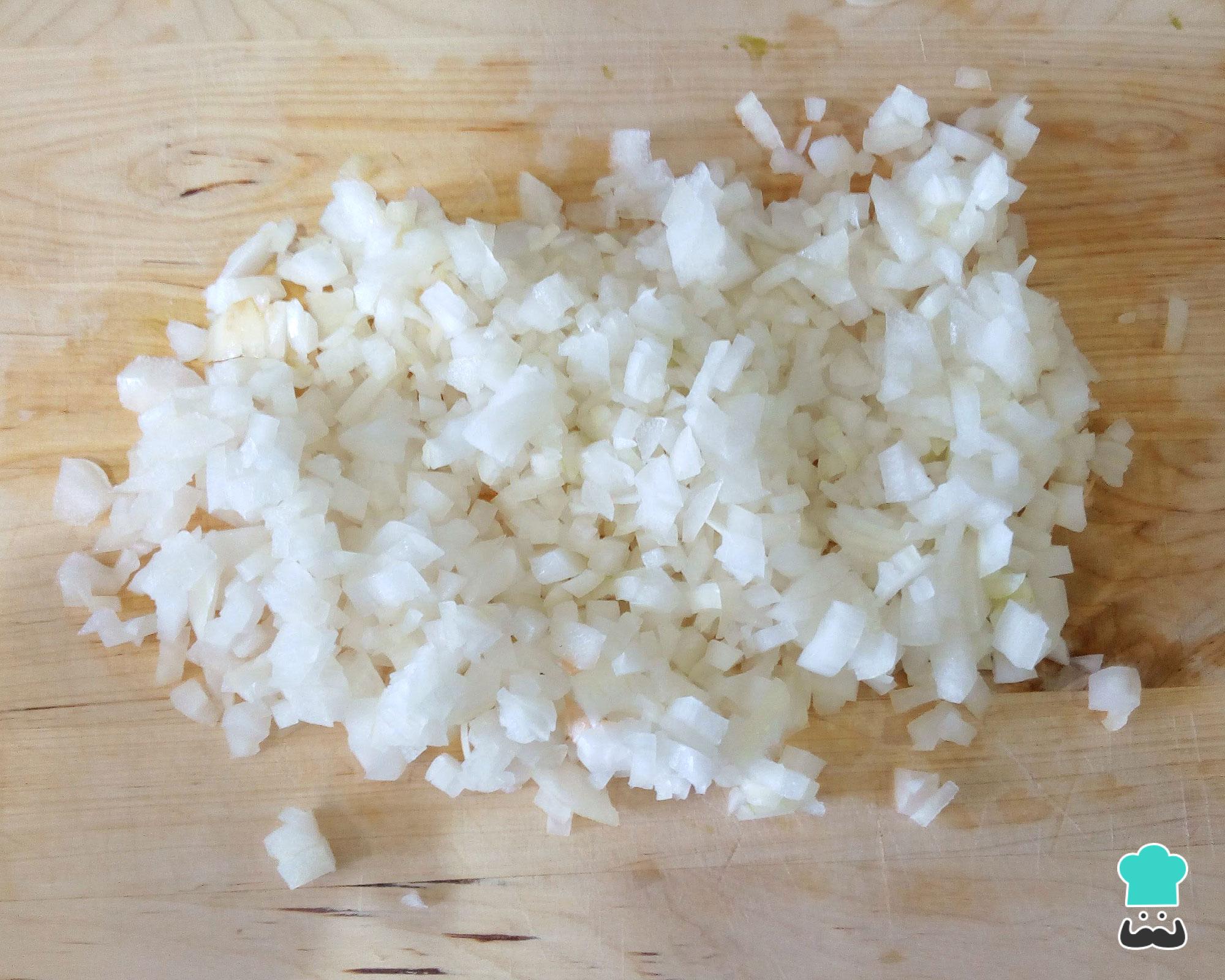 Em seguida pique os alhos e a cebola descascada ou, se preferir usar o alho poró, fatie apenas a parte branca.