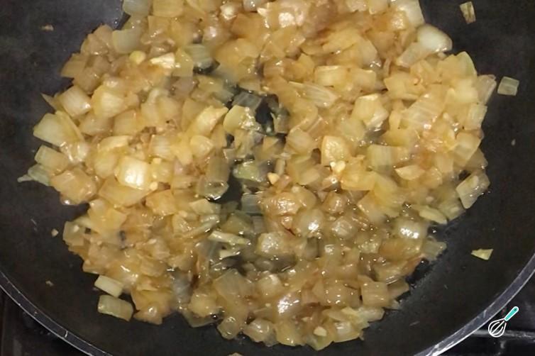 Descasque e pique a cebola. Em seguida, caramelize com o próprio açúcar. Para fazer isso, doure em uma frigideira antiaderente com spray de cozinha em fogo médio. Adicione 1 colher de sopa de água e mexa esporadicamente até evaporar. Repita este procedimento quantas vezes quiser até obter cebolas macias e doces.