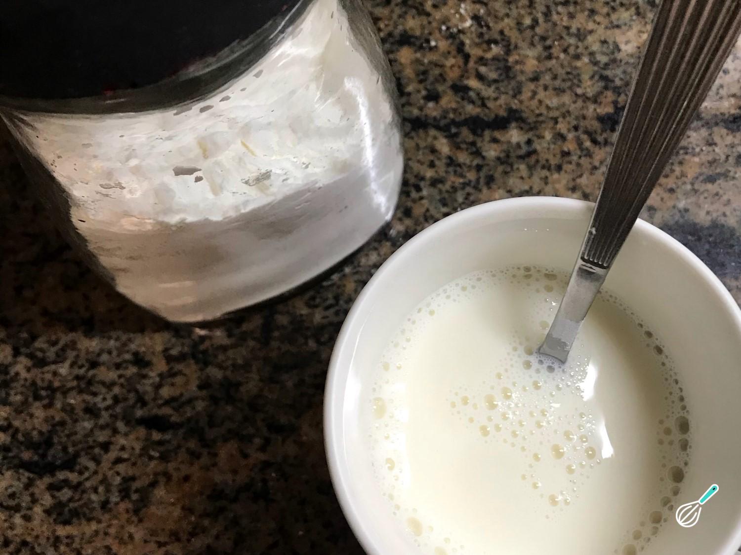 Dissolva a colher de sopa de amido de milho no leite frio para fazer o molho branco. Aqueça por 1 minuto no micro-ondas, mexa e aqueça por mais 30 segundos. Se notar que ainda não engrossou, mexa e aqueça por mais 20 segundos. O tempo vai depender da potência do seu micro-ondas.